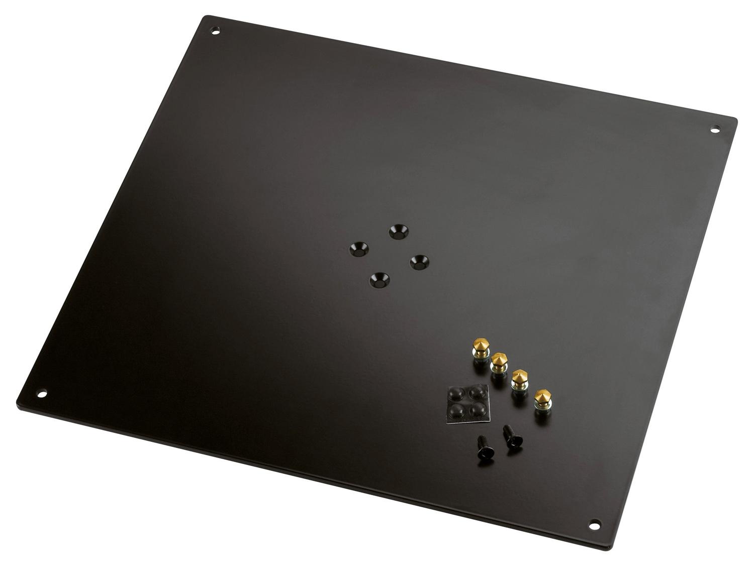 Piastra di supporto per monitor compatibile con il supporto da terra Konig & Meyer 26795. Disponibile in tre diverse dimensioni, include 4 punte e 4 pomelli in gomma.