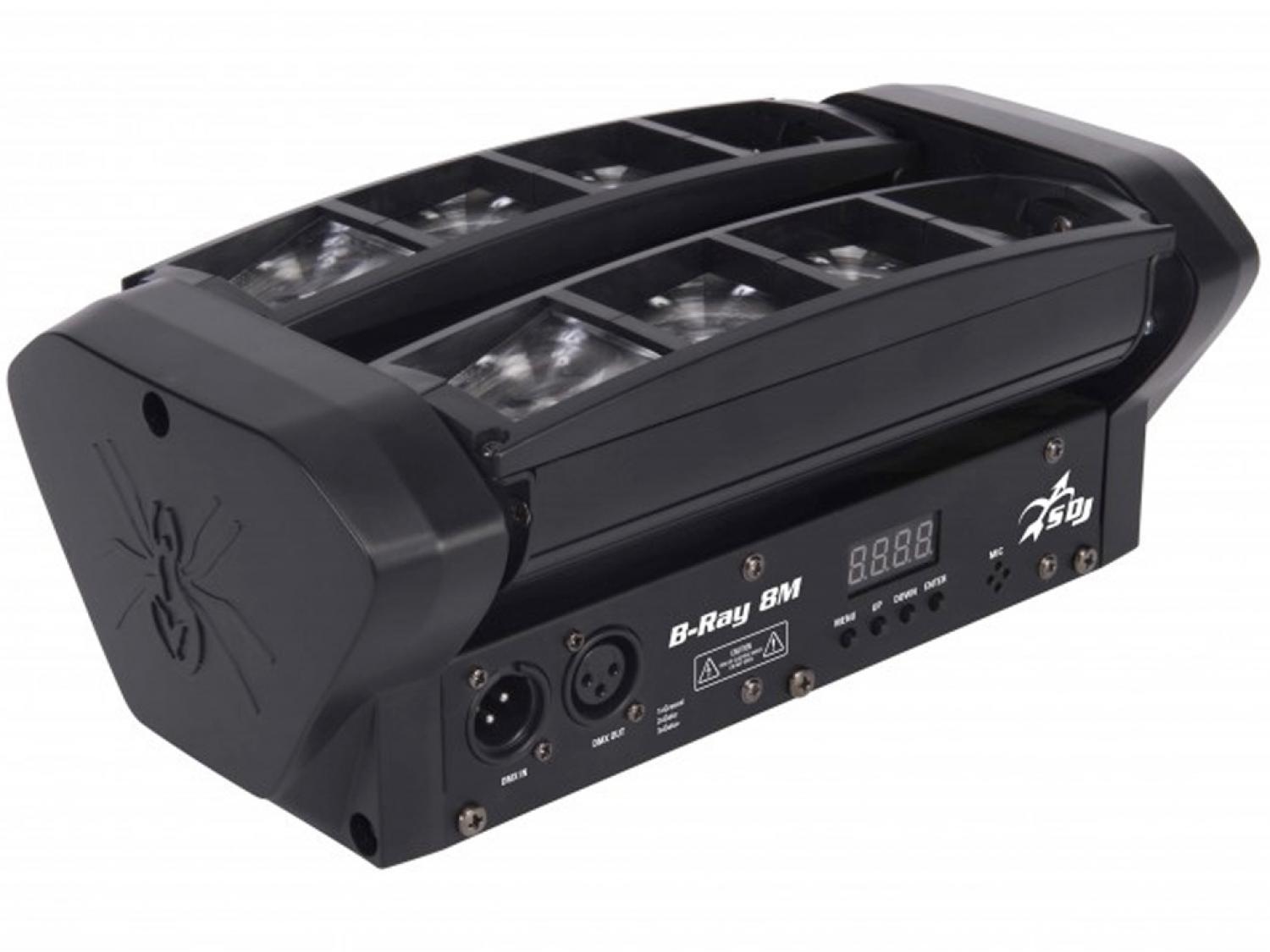 Pensato per il mondo DJ e degli utilizzatori occasionali, studiato nei minimi particolari per offrire le massime possibilità a chi si approccia per la prima volta al mondo del lighting o dell'intrattenimento indoor l'operatore  oggi può scegliere tra una vasta gamma d'effettistica beam di ultima generazione. L'innovativa linea B-Ray8M, offre agli addetti ai lavori una doppia barra parallela con ben 8 uscite beam con un angolo di proiezione di 4°, alimentate da potenti sorgenti LED RGBW singolo colore. Il doppio movimento tilt a 120° di ogni barra è controllabile singolarmente e genera effetti di movimento incredibili con fasci luminosi a lunga gittata che, se controllati singolarmente, offrono numerose possibilità creative idonee al campo d'utilizzo. Il software interno è stato realizzato garantendo una delle interfacce più intuitive del mercato, dando all'utente numerose possibilità di personalizzazioni richiamabili direttamente dal pannello di controllo o proposte nella modalità DMX.