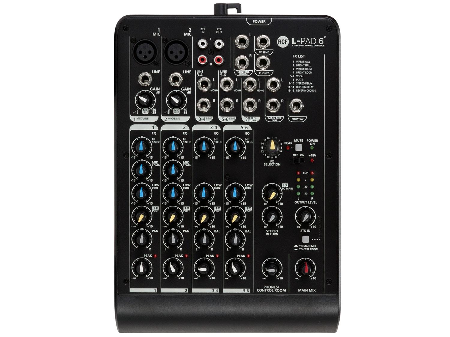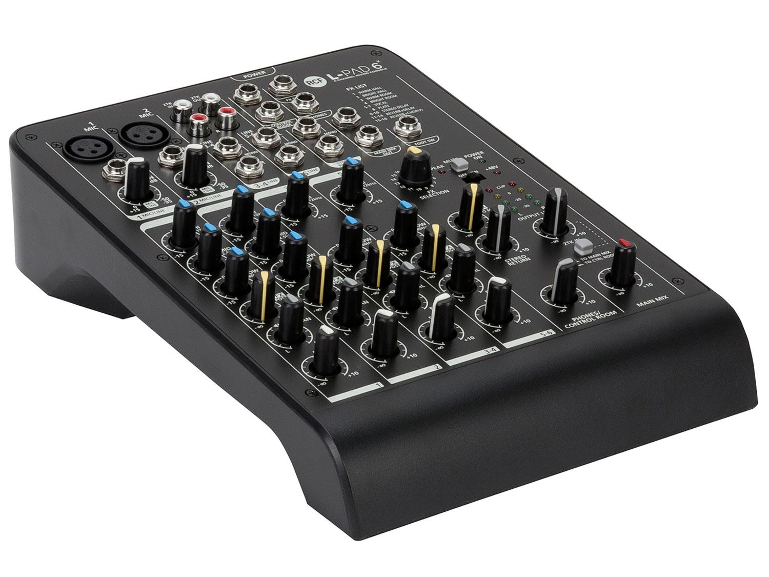 Con due ingressi audio microfonici trasparenti, due ingressi di linea stereo e la 2TK In/Out, L-PAD 6X è lo strumento ideale per concerti di piccole band, conferenze, eventi aziendali e tutte le situazioni in cui è necessario gestire diversi segnali. Quattro compressori monocomando sui canali microfonici aiutano a gestire anche i segnali dinamicamente più complessi. Il processore FX DSP interno a 16 preset permette di migliorare il suono con l'aggiunta di effetti realistici e caldi. È possibile installare L-PAD 6 X su un supporto microfono con gli appositi accessori.