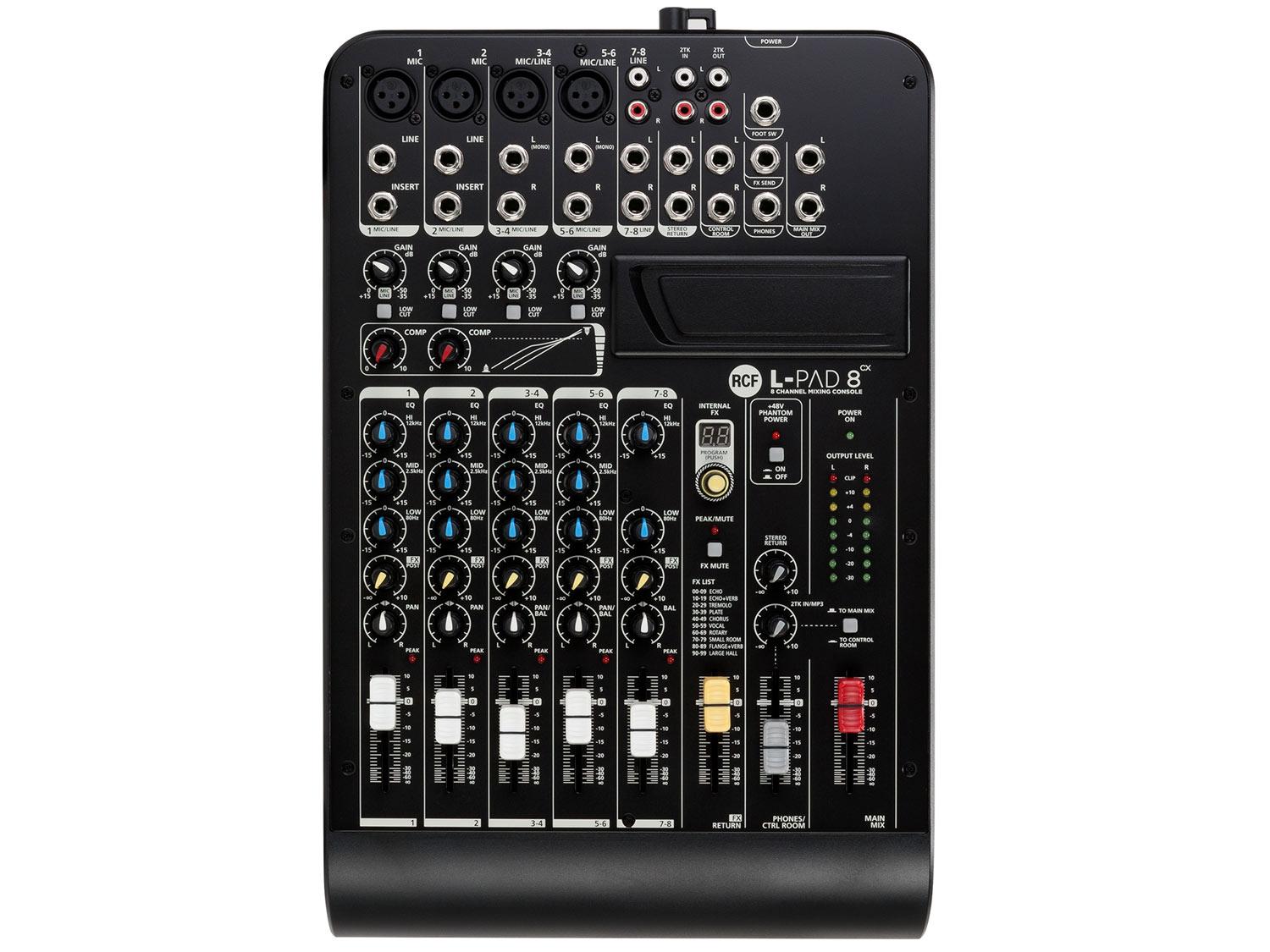Con quattro ingressi audio microfonici limpidi, tre ingressi di linea stereo e l'In/Out 2TK, L-PAD8CX è lo strumento ideale per concerti in duo/trio, voce, diffusione di musica di sottofondo e feste. Due compressori monocomando sui canali microfonici aiutano a gestire anche i segnali più complessi. Il processore interno FX DSP con 99 preset permette di migliorare il suono con l'aggiunta di effetti realistici e caldi. Lo slot L-PAD super versatile consente di inserire il lettore MP3 L-PAD, lettore / registratore o schede di connessione Bluetooth per un uso ancora più flessibile. Grazie all'accurato design L-PAD8CX italiano è facile da trasportare e gestire in tutte le situazioni.