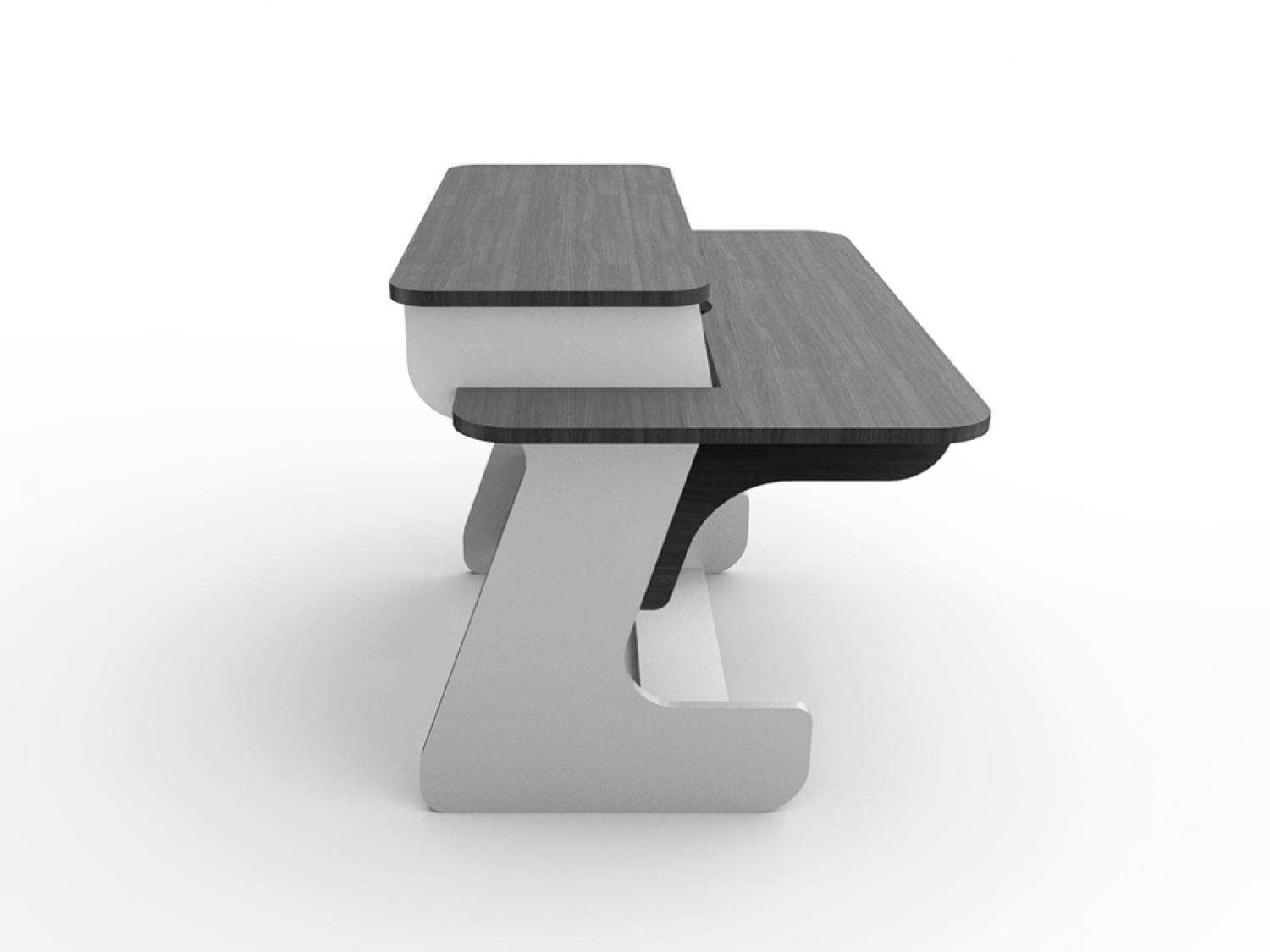 Il MIZA 61 è un compagno perfetto per il produttore che lavora in un ambiente moderno, ibrido. Fornisce una soluzione perfettamente adatta per una tastiera a 61 tasti su un piano che scorre sotto la superficie di lavoro quando non in uso. Troverai un pratico spazio per 8 unità rack proprio di fronte a te, per lavorare a tuo agio. Il MIZA 61 ha due livelli su cui lavorare, in modo che solo gli strumenti che utilizzi siano fuori all'aperto. Il piano superiore offre molto spazio per i tuoi monitor.