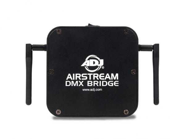 L'ADJ Airstream Bridge è un potente controller software DMX per dispositivi iOS mobili (iPad e iPhone) che può essere scaricato da Apple Store. L'hardware di rete crea una rete DMX senza fili per il controllo di dispositivi per illuminazione DMX. E' compatibile con ADJ Wifly e Elation Professional E-FLY. Gli utenti possono anche controllare prodotti non-Wifly dall'uscita DMX a 3-pin dell'unità. L'Airstream Bridge DMX di ADJ dispone di un ricetrasmettitore con tecnologia EXR wireless con una portata del segnale di 750m.