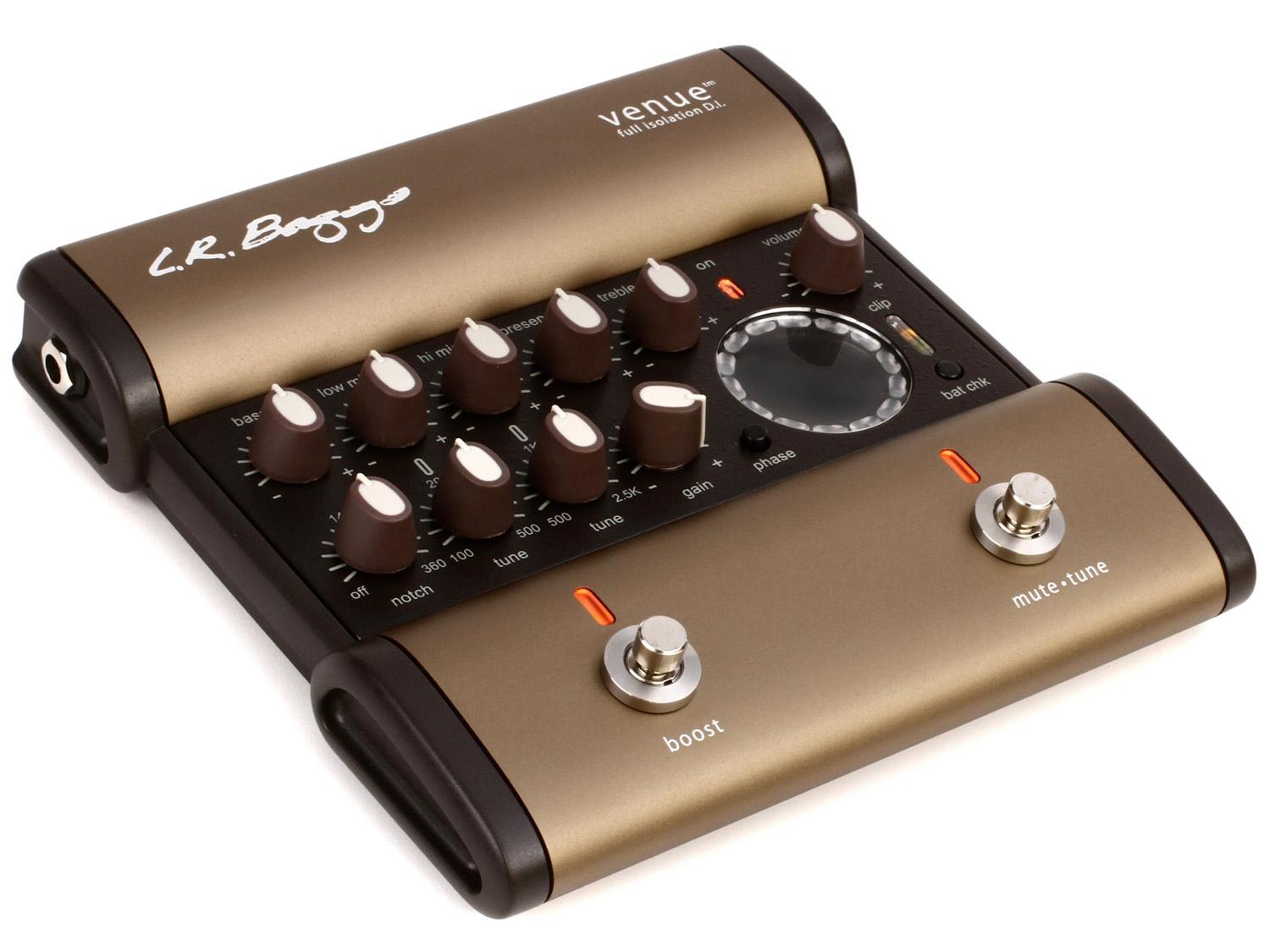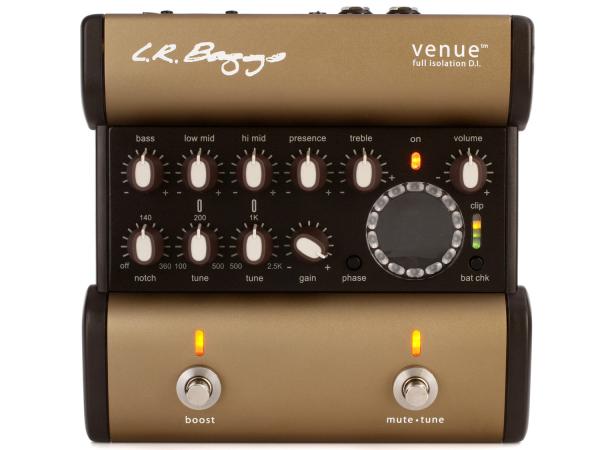 LR Baggs ha creato il DI Venue così leggero per poter viaggiare, regolarlo velocemente e suonare in modo incredibile ovunque ci si colleghi. The Venue DI offre un controllo completo mediante la combinazione di un'uscita DI, EQ 5 bande con le fasce low e hi-mid regolabili, clean boost variabile e accordatore cromatico tutto in un unico pedale acustico. Con il suo percorso del segnale interamente discreto, semiconduttori di alta qualità e l'uso esclusivo di condensatori a film da audiophili, il Venue DI è alla pari con l'elite dei preamplificatori e offre un suono da studio per il palcoscenico.