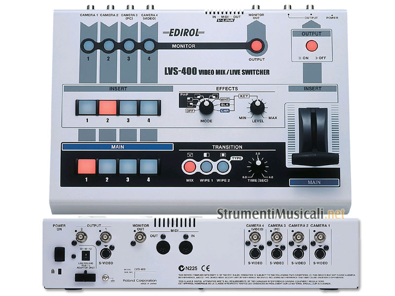 Da ora è ancora più semplice ottenere risultati video professionali grazie al mixer video LVS-400. Questo video switcher compatto a 4 canali è così semplice da utilizzare, che si possono ottenere transizioni ed effetti di chiave di qualità professionale, persino senza alcuna pregressa esperienza video. Progettato specificamente per le installazioni video, LVS-400 è equipaggiato con ingressi/uscite sia BNC che S-Video, 17 pulsanti retro-illuminati per il controllo in ambienti con scarsa luminosità, T-Bar per le transizioni manuali, regolazione "time control" per le transizioni gestite via pulsante e due potenziometri per gli effetti. Si possono effettuare tagli tra una sorgente e l'altra, semplicemente premendo il pulsante di output desiderato, visualizzare in anticipo le sorgenti con la funzione preview monitor out, utilizzare due tendine differenti o una dissolvenza con transizione fino a 4 secondi e, inoltre, attivare la funzione output on/off per effettuare la dissolvenza a nero quando il mixer non deve essere utilizzato. LVS-400 è incredibilmente versatile, semplice da utilizzare ed offre un segnale video in uscita cristallino. Se pensate di inserire performance video nei vostri eventi, LVS-400 è la scelta migliore che potete considerare.