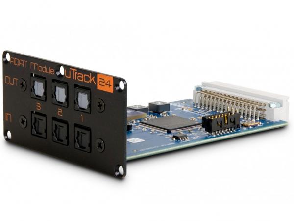 Espandi le tue capacità con la scheda opzionale uTrack24 ADAT. Questa nuova soluzione permette di dotare il tuo uTrack24 con 24 canali di segnali ADAT, e allo stesso tempo l'invio di tutte le 24 uscite delle tracce a qualsiasi mixer digitale ADAT. Il tuo uTrack24 può ora interfacciarsi direttamente con uno dei formati digitali più comuni e diffusi utilizzati nel suono dal vivo, MI, e il paesaggio audio professionale.