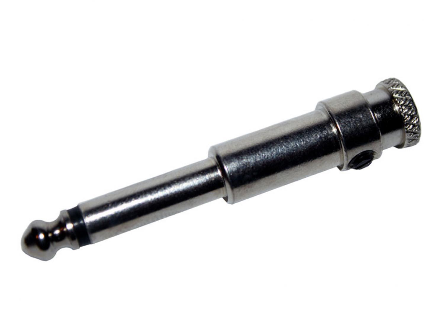 Connettore jack dritto da 1/4" in nickel che non ha bisogno di saldature per legarsi al cavo. E' dotato infatti di un sistema che tramite un ago ed una vite riesce a chiudere i contatti e mettere il cavo a massa.