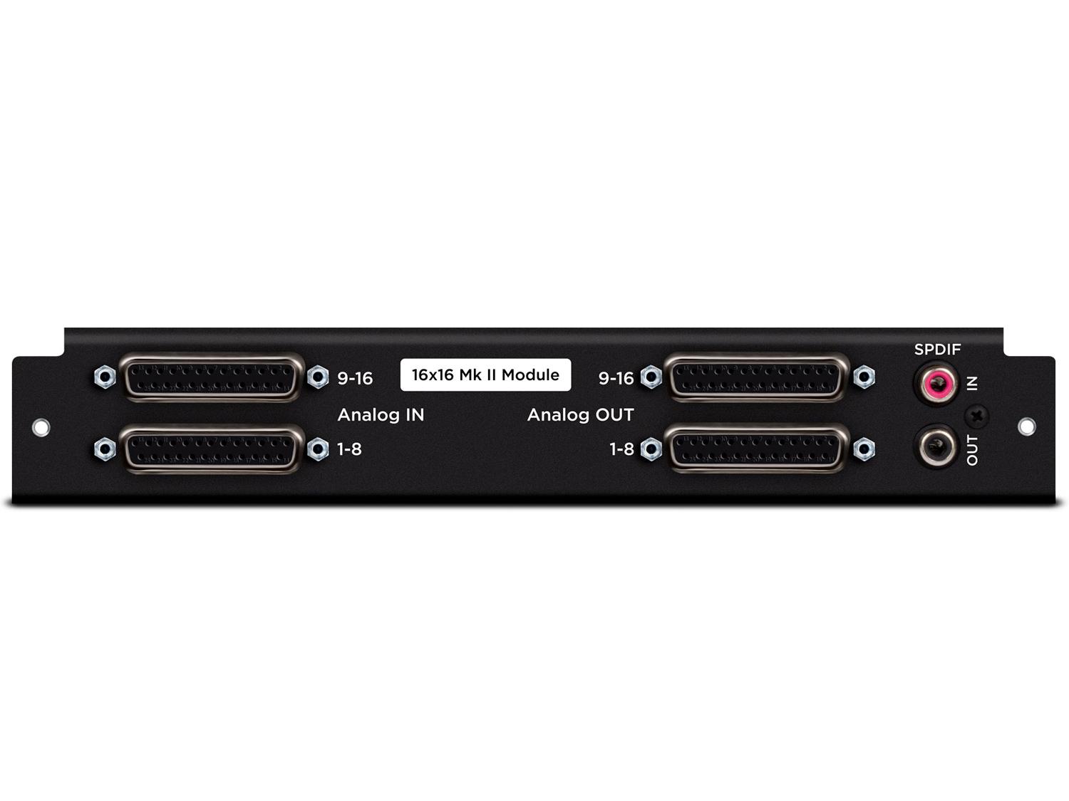 Il modulo Symphony 16 input + 16 output analogici aggiunge ben 16 canali completi (ingresso e uscita) al tuo Apogee Symphony I/O MKII. Le sezioni di ingresso e di uscita analogiche sono costituiti da quattro connettori D-Sub a 25-pin, ciascuno con otto canali bilanciati. E come bonus sono anche disponibili, due canali di I/O digitali S/PDIF. Hai un potente convertitore con l'Apogee Symphony I/O MKII, puoi massimizzare il suo potenziale con il modulo Symphony 16 Analog Input + 16 Analog Output.