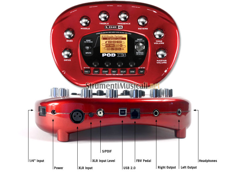 • 8 potenziometri cromati per i controlli: Drive, Bass, Mid, Treble, Presence, Reverb, Tone Volume, Master Volume