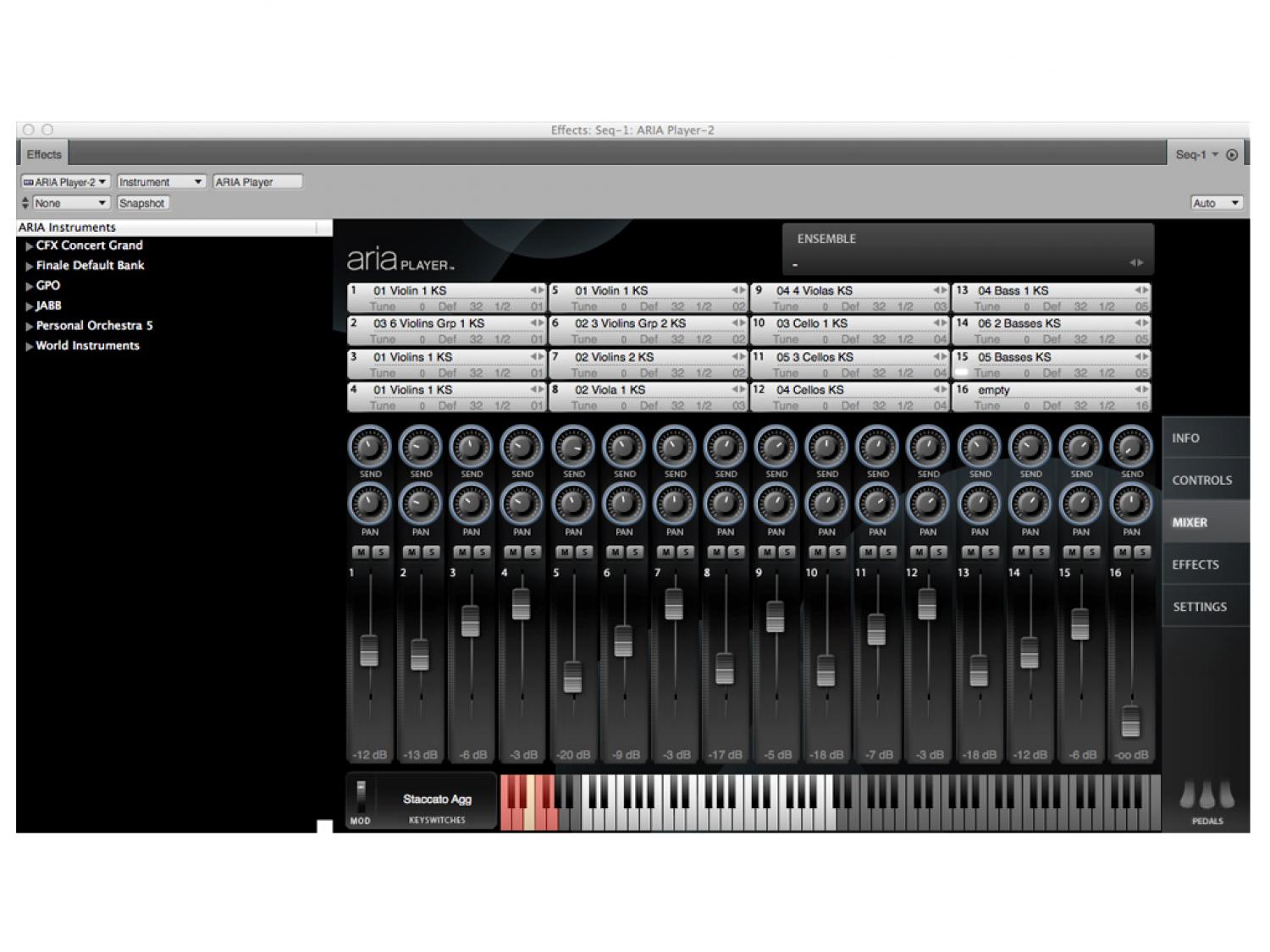 • Sono inclusi tutti i principali strumenti d'orchestra: Archi, ottoni, fiati, percussioni e tastiere
