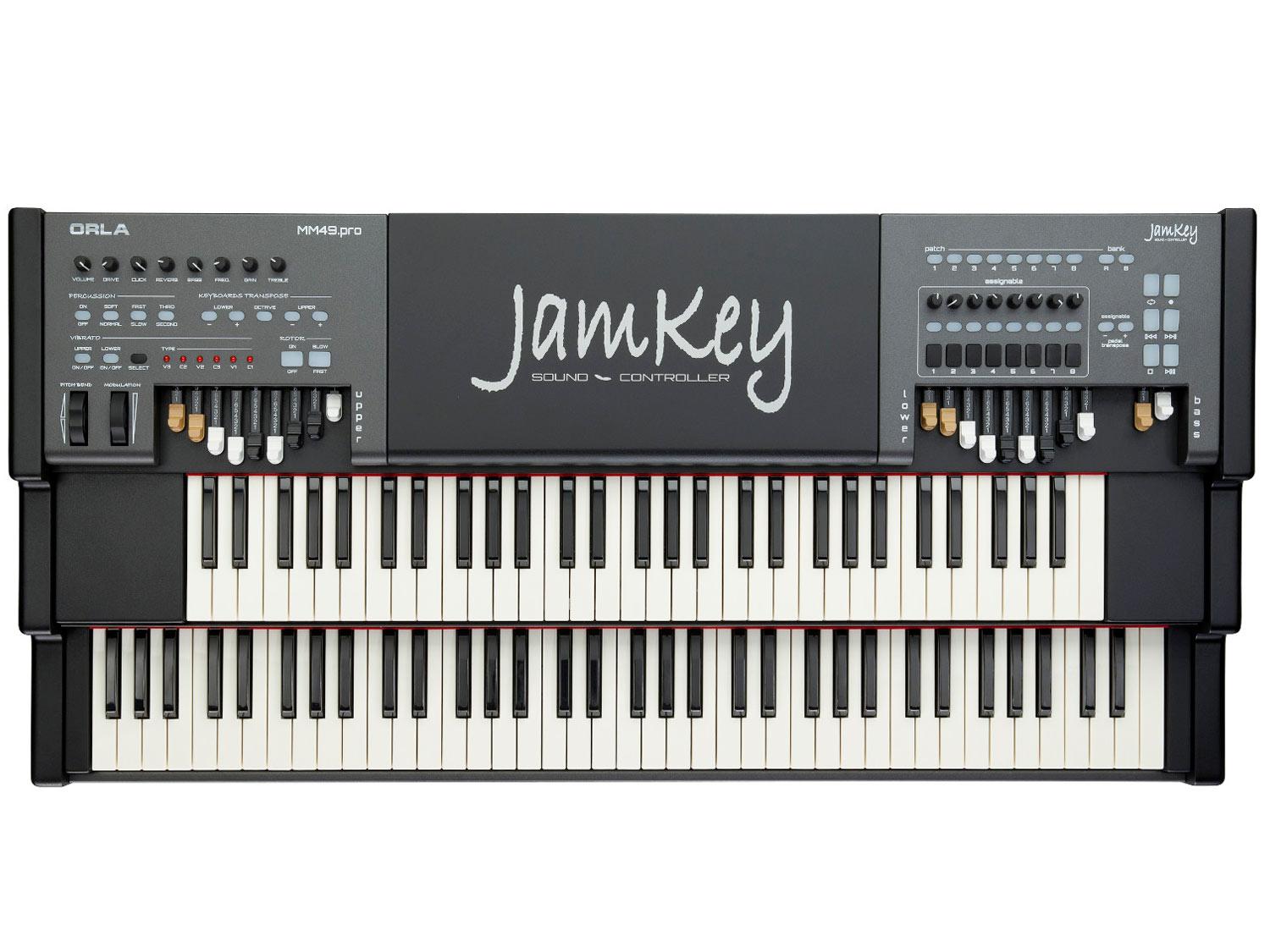 Pensate ad una master keyboard incredibile, dotata di due tastiere waterfall, controlli rotativi e di tutti pulsanti di cui potresti avere bisogno, compresi due set di veri drawbars. Questo è il Jamkey. Il Jamkey semplifica la vita: sul pannello di sinistra, si possono trovare tutti i comandi necessari per controllare le funzioni di un organo "Tone Wheel". Sul pannello di destra, si trovano tasti e controlli rotativi programmabili. Tutti i pulsanti, i controlli rotativi e anche i drawbars possono essere riprogrammati utilizzando l'editor JamKey che è disponibile per il download nel sito Jamkey.net. Si utilizza un computer, un iPad o un modulo sonoro sul palco? La parte centrale della JamKey è stata progettata per alloggiare agevolmente il vostro computer portatile, tablet o modulo sonoro. Quanti strumenti virtuali software per computer utilizzate? Probabilmente molti. Come controllarli tutti quando si è sul palco? Il JamKey è la risposta.