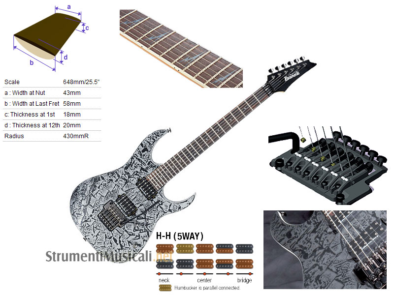 • Humbucker DiMarzio IBZ (ponte) + humbucker DiMarzio IBZ (manico)