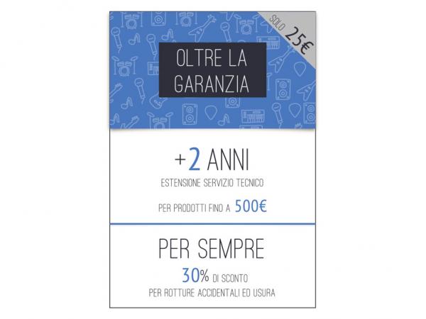 Acquistando questa estensione potrai prolungare di ulteriori 2 anni la garanzia del tuo prezioso strumento. Potrai avere inoltre uno sconto del 30% sulla riparazione per rotture accidentali e/o usura del tuo strumento. Per sempre.