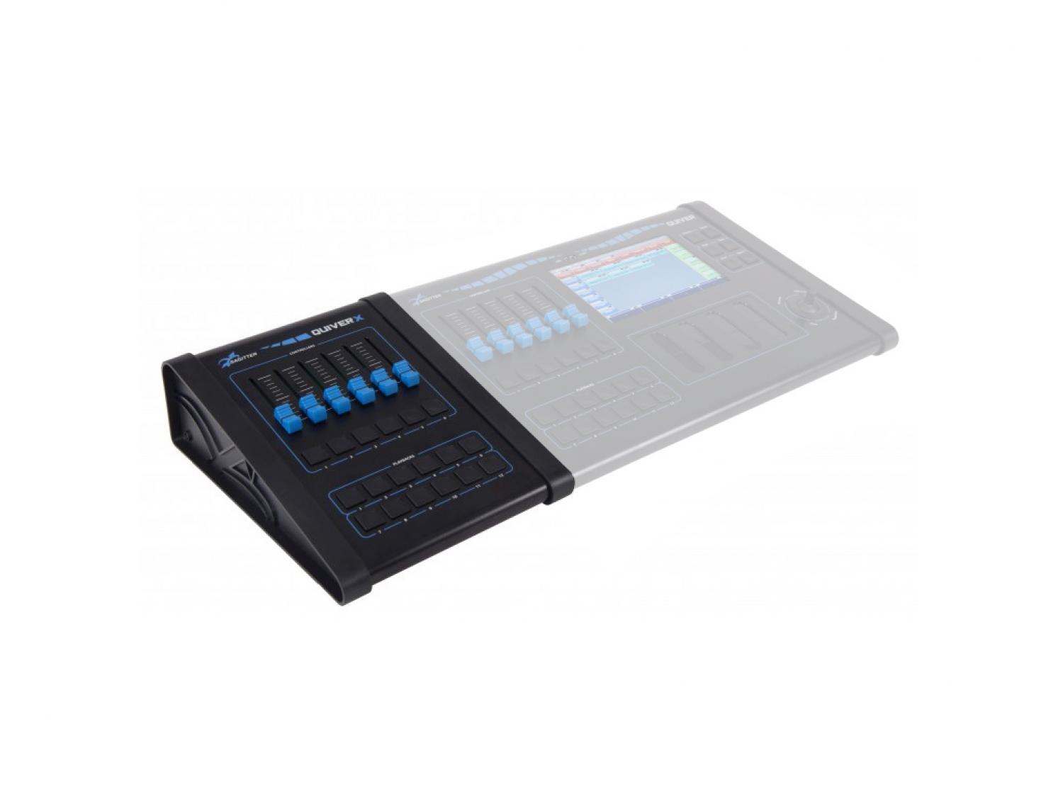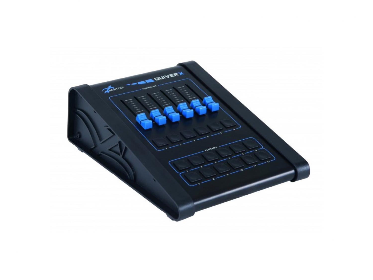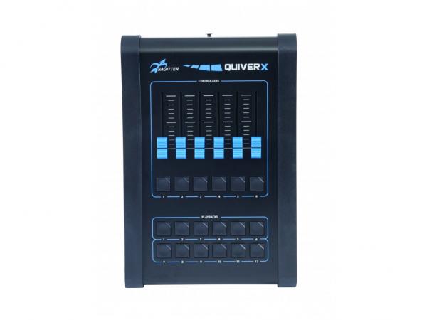 Quiver X è la nuova console luci Sagitter che racchiude, in un design originale e compatto, tutte le funzionalità più avanzate richieste dagli operatori luci per gestire grandi e piccoli show. Il suo innovativo sistema operativo offre un'interfaccia grafica intuitiva pensata anche per gli utilizzatori meno esperti che hanno bisogno di una flessibilità operativa maggiore rispetto a quella delle tradizionali console sul mercato. E in più, tutta l'affidabilità di un prodotto che è espressione piena del "Made in Italy": Quiver X è infatti disegnata, progettata e realizzata interamente in Italia. Ogni expand è composta da 6 fader, 6 pulsanti flash, 12 pulsanti di accesso ai registri playback, uscita DMX su connettore XLR 3 poli. Quiver X si collega alla console principale tramite un apposito cavo senza l'ausilio di software aggiuntivi fino ad un massimo di due espansioni per console.