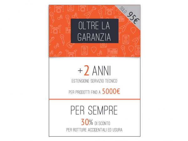 Acquistando questa estensione potrai prolungare di ulteriori 2 anni la garanzia del tuo prezioso strumento. Potrai avere inoltre uno sconto del 30% sulla riparazione per rotture accidentali e/o usura del tuo strumento. Per sempre.