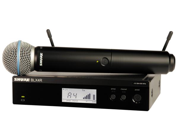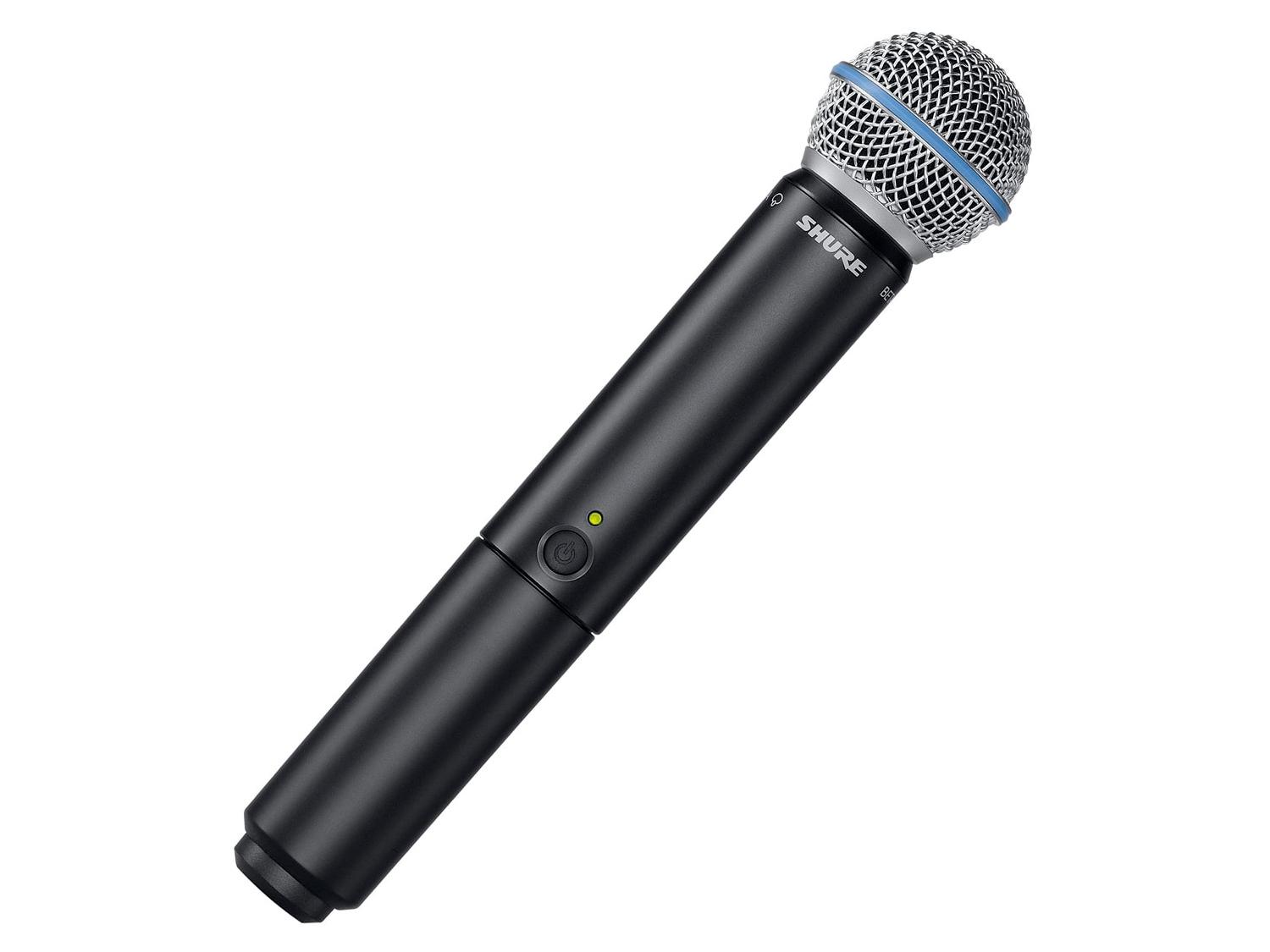 Il Sistema microfonico palmare Shure BLX2/Beta58A wireless fornisce eccezionale nitidezza per le applicazioni vocali dal vivo. Questo sistema BLX è progettata per semplicità d'uso, qualità professionale del suono ed affidabilità che competono con sistemi molto più costosi. Il trasmettitore BLX2 con capsula Beta 58A è dotato di diagramma polare supercardioide ed è ottimizzato per voci solista. La larghezza di banda 24MHz (M17/H8E) è particolarmente indicata per il mercato Italiano.