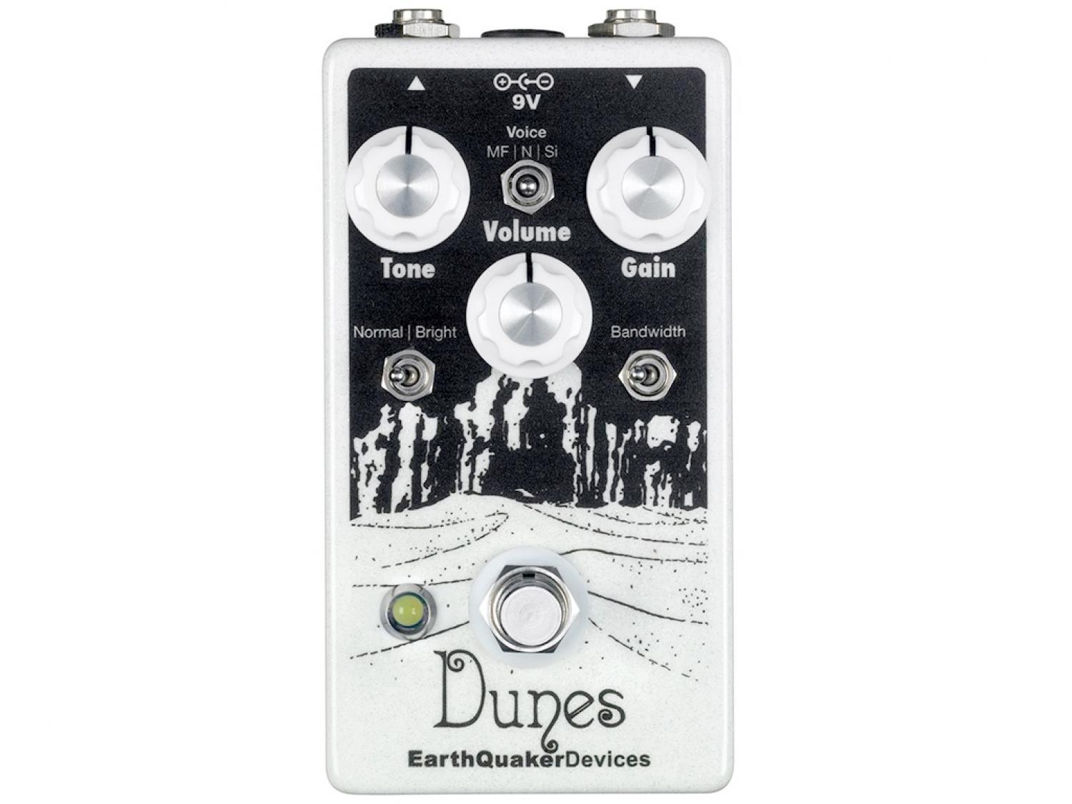 Dunes è una versione compatta del popolare Palisades; un versione del classico overdrive 808 con molte funzionalità. Presenta lo stesso Gain, Tone e Level insieme alle impostazioni di suoni e larghezza di banda preferite da EarthQuaker Devices, così come l'interruttore "Normal/Bright". Le voci selezionabili sono: "Mosfet" per un suono crunchy compresso (impostazione 3 sul Palisades), "Silicon" per il classico suono 808 (impostazione 5 sul Palisades) e "None", che va dal clean boost alla grintosa, pura distorsione opamp con un boost massiccio sul volume (impostazione 1 sul Palisades).