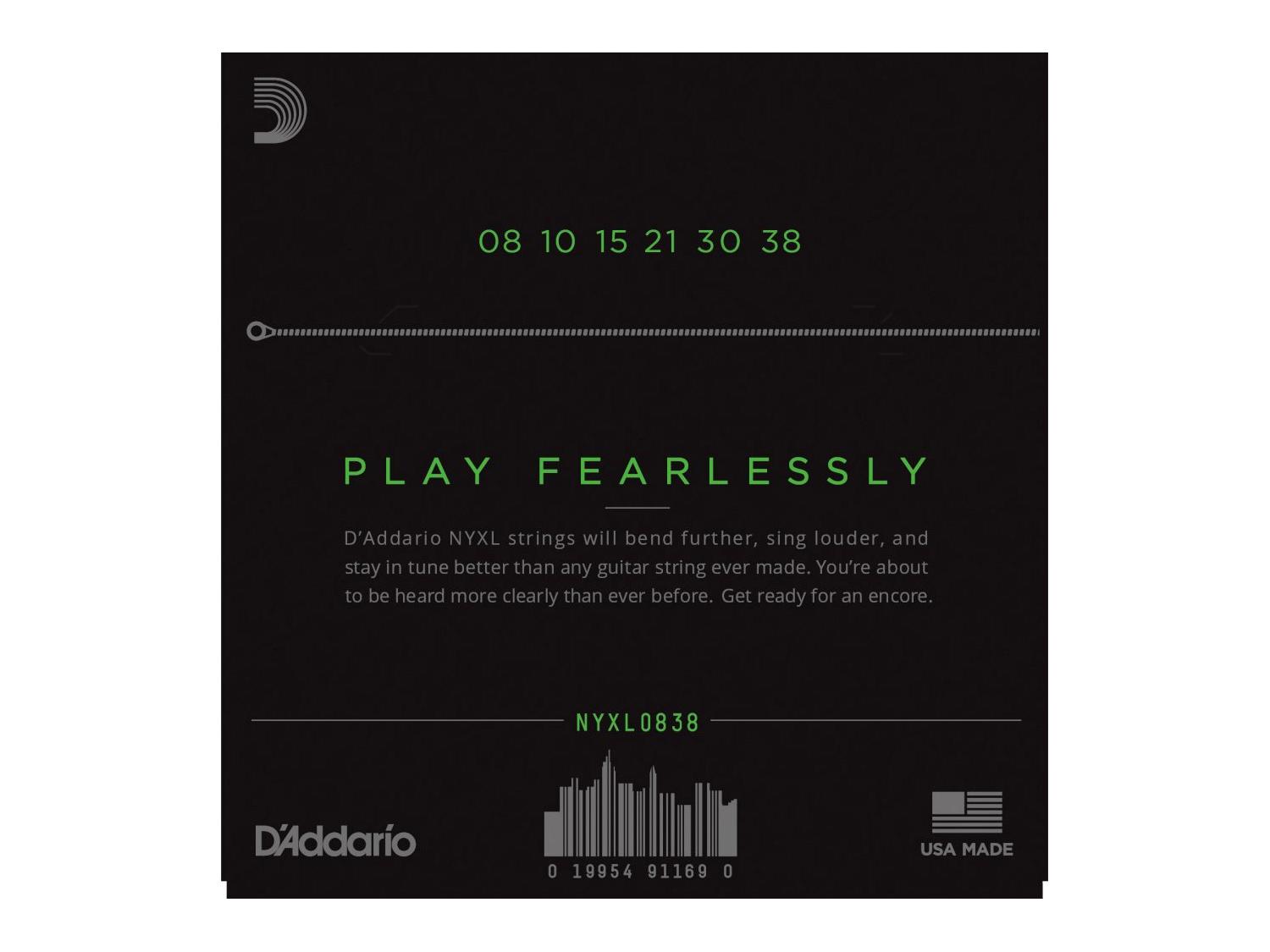 Le NYXL0838 sono il set di corde D'Addario dal calibro più sottile, ideali per i chitarristi che hanno bisogno di corde con la tensione più leggera possibile e la massima facilità di uso. Le corde della serie NYXL si flettono di più, suonano più forte, e rimangono accordate meglio di qualsiasi altra corda che tu abbia mai usato prima. Concepite, sviluppate e prodotto da D'Addario a New York, questa corde con anima in acciaio ad alto tenore di carbonio, resistenti alla rottura, offrono un nuovo livello di libertà, sicurezza e potenza.