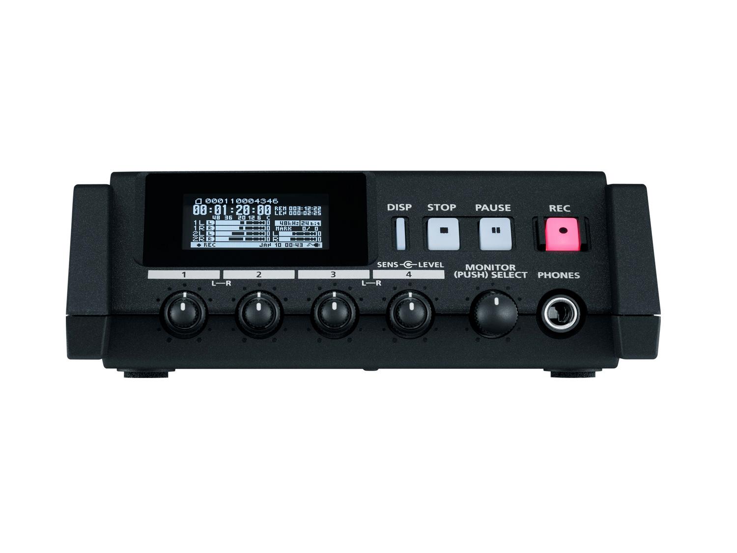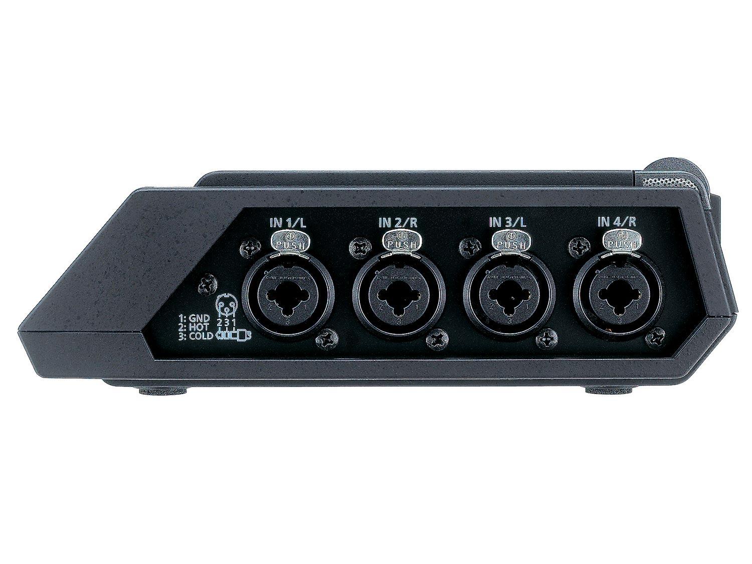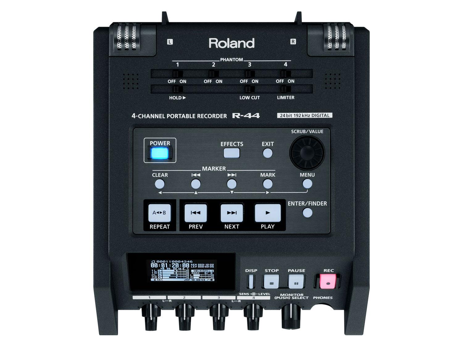 Sebbene l'R-44 includa una serie di opzioni di input e output per quasi tutte le condizioni di registrazione di campo, viene fornito ready-to-go, con il suo microfono stereo ed altoparlanti monitor di alta qualità. Il Roland R-44 include molteplici effetti professionali per rifinire le tracce audio. Un limiter aiuta a sopprimere i picchi improvvisi di una fonte di ingresso, aiutando a liberare le registrazioni da qualsiasi distorsioni indesiderate o clipping. Altrettanto utile, il filtro low-cut incluso evita il rumore del vento o i rumori da maneggiamento del microfono. Altri effetti includono un EQ a 3 bande, EQ grafico 6 bande, Enhancer e DeEsser che possono essere tutti usati per migliorare notevolmente la professionalità delle tracce audio. L'R-44 è dotato di una funzione di pre-registrazione incredibilmente utile per non perdere mai i momenti importanti. Tramite il buffering dei segnali di ingresso per un intervallo di tempo selezionabile dall'utente, l'R-44 include i secondi precedenti alla reale attivazione del pulsante di registrazione. Non solo questo è incredibilmente utile quando si è in attesa che qualche evento si verifichi, ma aiuta anche a ridurre i lunghi tempi morti all'inizio di una registrazione non dovendo avviare il registratore troppo in anticipo. Quattro jack di ingresso combo sull'R-44 supportano la connessione XLR e jack da 1/4". Mentre l'alimentazione Phantom assicura di poter utilizzare i tuoi microfoni a condensatore preferiti, undici sensibilità d'ingresso selezionabili aiutano a registrare facilmente dispositivi con diversi livelli di ingresso - da microfoni a strumenti musicali. Con il suo schermo a LED ad alto contrasto, l'R-44 è visibile da ampi angoli, garantendo un facile utilizzo in ogni situazione di registrazione di campo. Misuratori di livello reattivi rendono possibile regolazioni del livello precise, mantre pulsanti auto-illuminati facilmente accessibili su ogni controllo chiave ti consentono di operare in modo fluido il tuo R-44 in situazioni di registrazione a bassa luminosità. Se hai bisogno di otto canali di registrazione simultanea, è possibile utilizzare il terminale Control Sync con due unità R-44 collegate tramite un mini-cavo stereo. In questo modo, l'unità master può controllare a distanza record standbay, record start e record stop dell'unità slave.Si può facilmente montare l'R-44 sul computer tramite una connessione USB 2.0. L'R-44 funziona come un normale dispositivo di archiviazione USB, permette di copiare i dati da e per, con un semplice drag and drop.