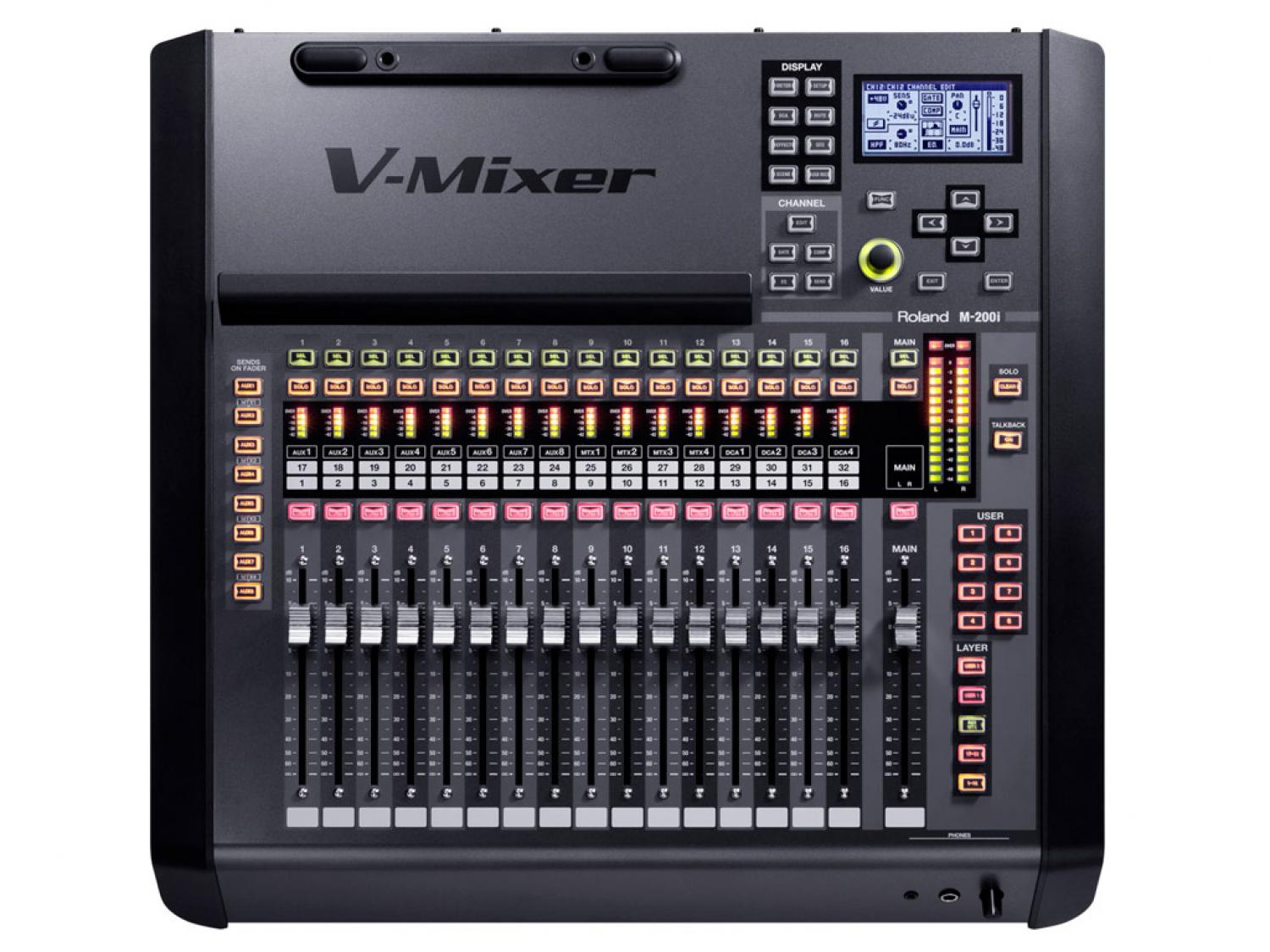 La console di mixaggio digitale Roland M-200i V-Mixer racchiude caratteristiche della serie V-Mix in un formato a 32 canali incredibilmente compatto ed abbordabile. Una combinazione di una GUI basata su iPad ed un reale controllo hardware manuale, l'M-200i rende la creazione di effetti e processori un gioco da ragazzi, senza mattere in secondo piano la sua funzionalità di base con marchingegni superflui. In realtà, non c'è nemmeno bisogno di possedere un iPad per accedere a tutte le funzioni più profonde del M-200i, grazie ai suoi ampi controlli ed un display LCD integrato. E dal momento che è dotato di una porta di espansione REAC, è facile aggiungere digital snake, registrazione integrata e sistemi di mixaggio personali alla console Roland V-Mix M-200i.