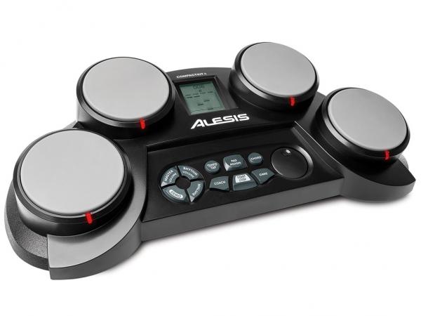 Alesis CompactKit 4 è una percussione elettronica da tavolo dotata di 4 pad sensibili alla dinamica e di un altoparlante, che funziona alimentata da corrente oppure da 6 pile tipo "C" (non incluse). Pensata per chi vuole muovere i primi passi nel mondo delle percussioni, la batteria elettronica CompactKit 4 dispone di un'ottantina di suoni (70 di percussioni/batteria, 10 effetti) assegnabili ai 4 pad e offre tre distinte modalità di allenamento: quella Song, con 50 brani riproducibili con o senza parte ritmica, quelle Game e Coach che permettono all'utente di allenarsi in modo assistito tramite le indicazioni grafiche che compariranno sul display LCD. Al termine di ogni sessione Game o Coach, l'Alesis CompactKit 4 vi assegnerà un punteggio da 0 a 100%.