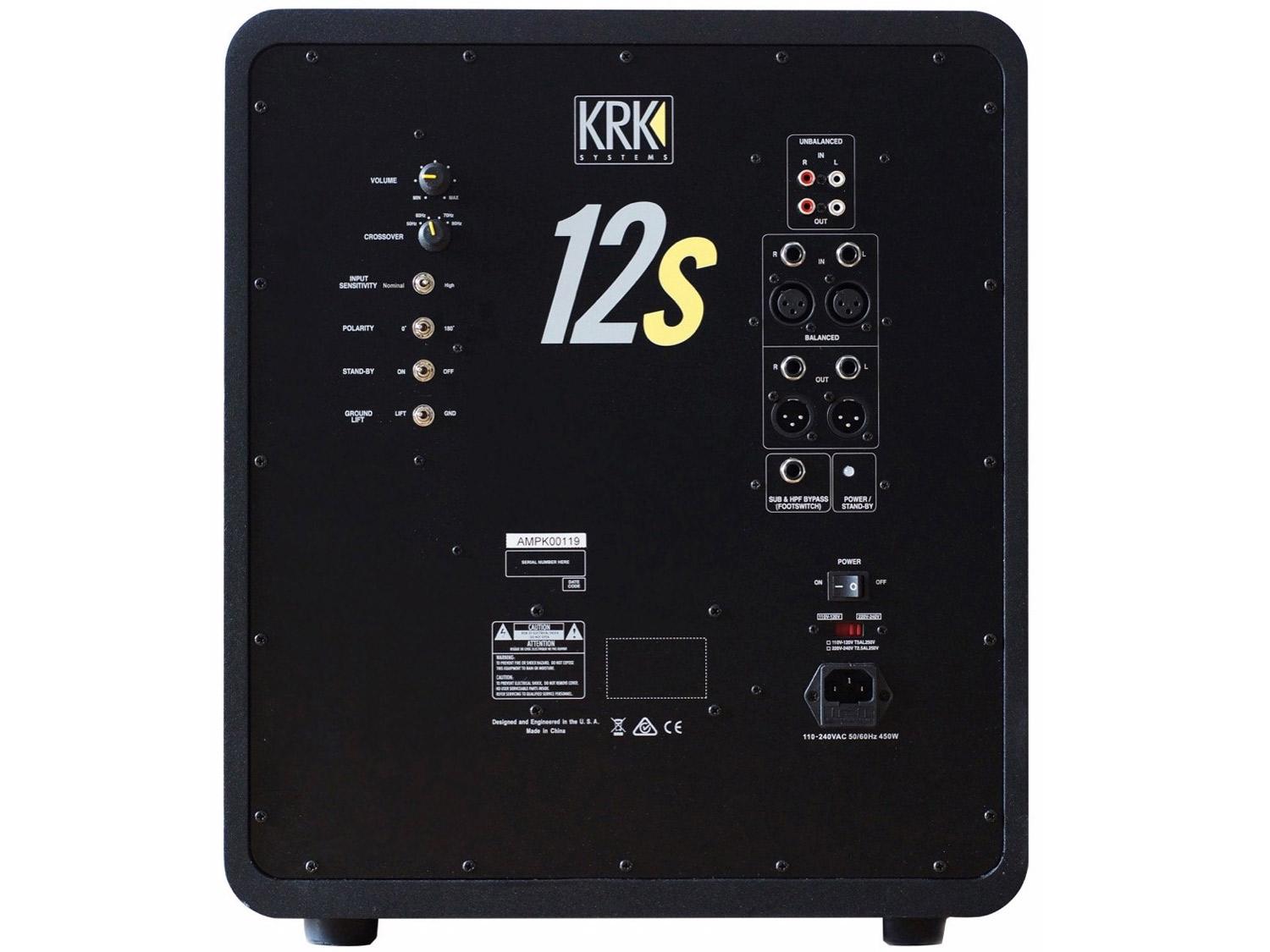 Il subwoofer KRK12S2 amplificato è il complemento perfetto per le serie di studio monitor KRK VXT, Rokit, o qualsiasi altro studio monitor da 6" a 10". Il KRK12S2 è progettato per estendere la risposta di un esistente sistema di monitoraggio in modo che la porzione a bassa frequenza del mix possa essere ingegnerizzata. Il KRK12S2 presenta il suono potente, definito e a bassa distorsione che è il simbolo di tutti i sistemi di monitoraggio KRK. Un amplificatore efficiente e a bassa distorsione da 225 Watt rende il subwoofer KRK12S2 perfetto per applicazioni di project studio professionali che richiedono una pressione del segnale incrementata. La porta dei bassi anteriore ed il leggero woofer KRK in Kevlar ad alta resistenza garantiscono un punch dinamico nella fascia bassa. Il KRK 12S2 ha una ampia gamma di regolazione dei bassi e l'inversione di fase, ingresso LFE, limiter interno disinseribile, ed ingressi sia bilanciati che sbilanciati. Inoltre il subwoofer ha un crossover interno che può essere escluso dal percorso del segnale, quando il sub viene silenziato, che consente di confrontare la gamma completa del materiale con o senza il contenuto subsonico. Una griglia robusta protegge il driver ed aggiunge l'aspetto lucido all'unità.