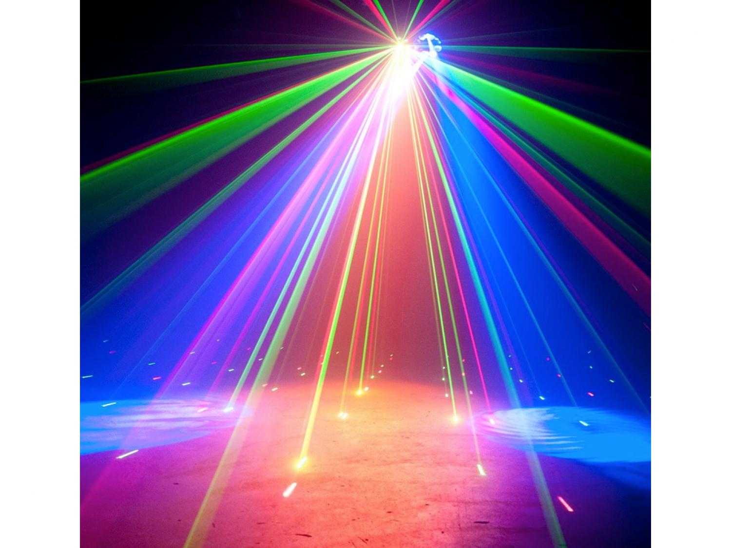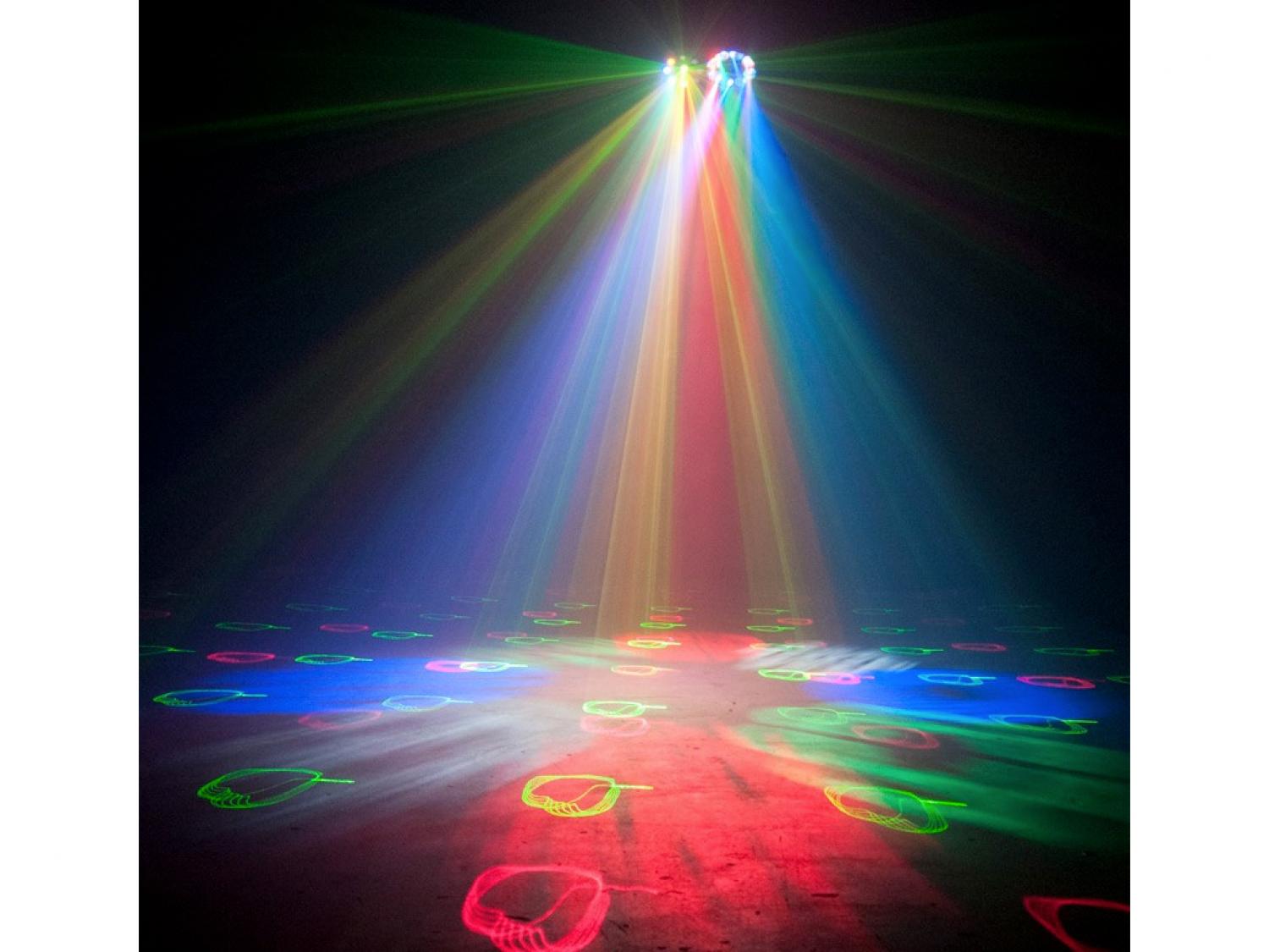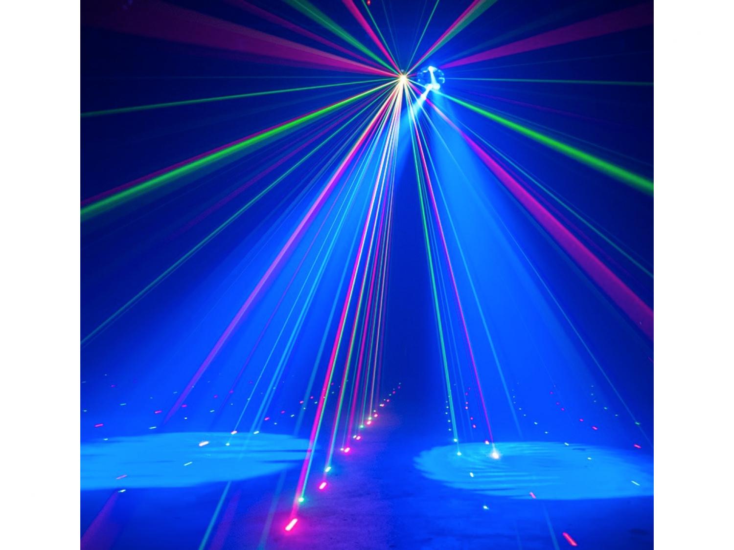 • Equipaggiato con: 8x LED RGBW 3W + 8x LED RGBA 1W + Laser verde e rosso