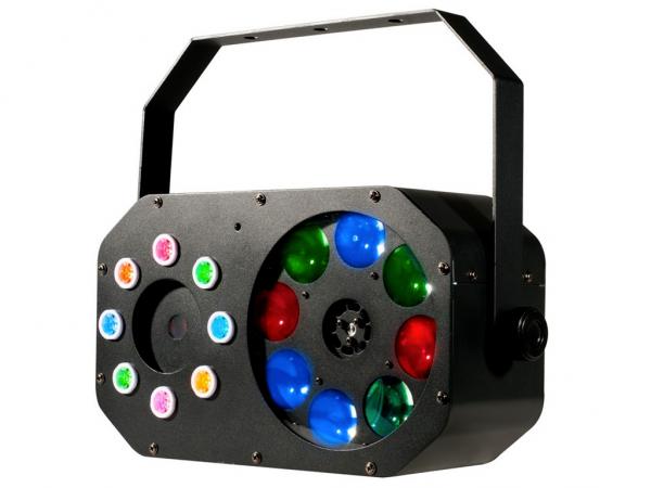 • 3 Effetti ad alta luminosità in 1: Effetto gobo, strobo/chase e laser