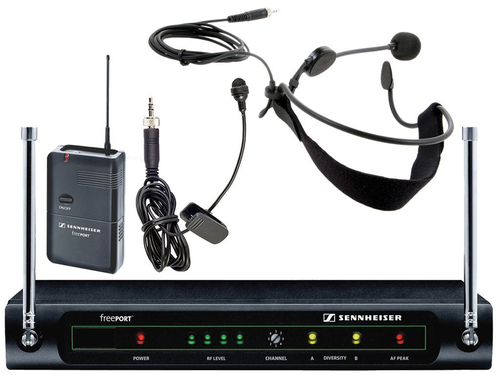 Sennheiser con FreePort offre un sistema a radiofrequenza robusto, tecnicamente allo stato dell'arte e totalmente privo di complicazioni. Trasmissione totalmente affidabile, per usarlo non bisogna essere tecnici esperti in radiofrequenze: basta inserire le batterie, connettere il ricevitore e accenderlo. Ciascuno dei quattro canali UHF può essere acceso con la semplice rotazione di una manopola. Nessun rischio di problemi con le frequenze. Questo significa che si possono usare quattro sistemi FreePort contemporaneamente. Il sistema è eccezionalmente robusto e comprende un microfono clip-on ed un headset nero.