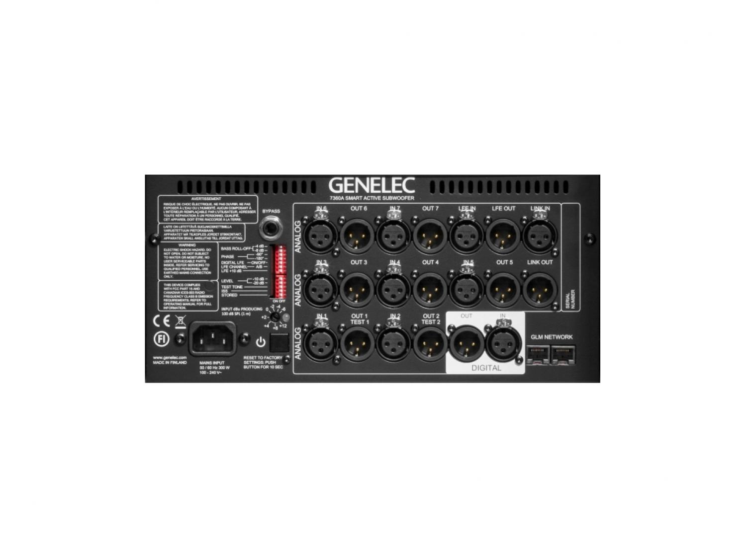 Il 7360A unisce la tecnologia Laminar Spiral Enclosure (LSE) con le tecnologie AutoCal e GLM di controllo di rete. L'AutoCal di Genelec permette di allineare automaticamente ogni subwoofer per livello, timing, fase di crossover ed equalizzazione delle anomalie di risposta dell'ambiente. Fornisce prestazioni a bassa frequenza estese, accurata riproduzione delle caratteristiche timbriche e capacità dinamiche elevate, l'7360A supporta un'architettura distribuita di gestione dei bassi. Offre inoltre ingressi XLR analogici a 7.1 canali e uscite con ingressi e uscite XLR AES / EBU stereo senza bisogno di convertitori A/D esterni aggiuntivi. Un'unità amplificatrice in Classe D è integrata e contiene filtri crossover DSP, sovraccarico driver e circuiti di protezione. Il 7360A è lo strumento di monitoraggio a bassa frequenza per studi musicali, applicazioni mobili, workstation digitali, radio e trasmissioni televisive, che offre una eccezionale nitidezza, definizione e neutralità del suono.