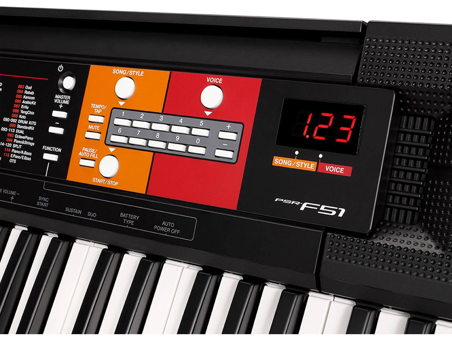 L'obiettivo principale di Yamaha nella progettazione della PSR-F51 erano funzionalità base che fossero semplici e user-friendly. Come risultato, si è ottenuta una tastiera che chiunque troverà facile da far funzionare e da suonare. Utilizzando un pannello intuitivo, è sufficiente selezionare la voce ed il ritmo per iniziare subito a suonare e divertirsi. Nonostante sia compatta e leggera, la PSR-F51 racchiude una tastiera di dimensioni regolari con 120 voci e 114 ritmi provenienti da tutto il mondo. Inoltre, questo strumento è ideale per una vasta gamma di scenari diversi - non solo è ideale per i principianti e studenti, ma è anche possibile alimentarla con batterie per spettacoli musicali all'aperto.