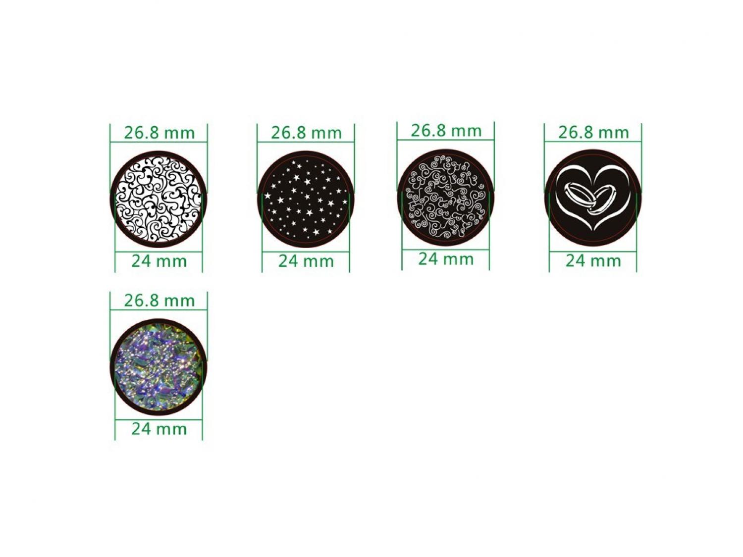 • Dimensione Gobo: 26,8mm, dimensione visibile 24mm