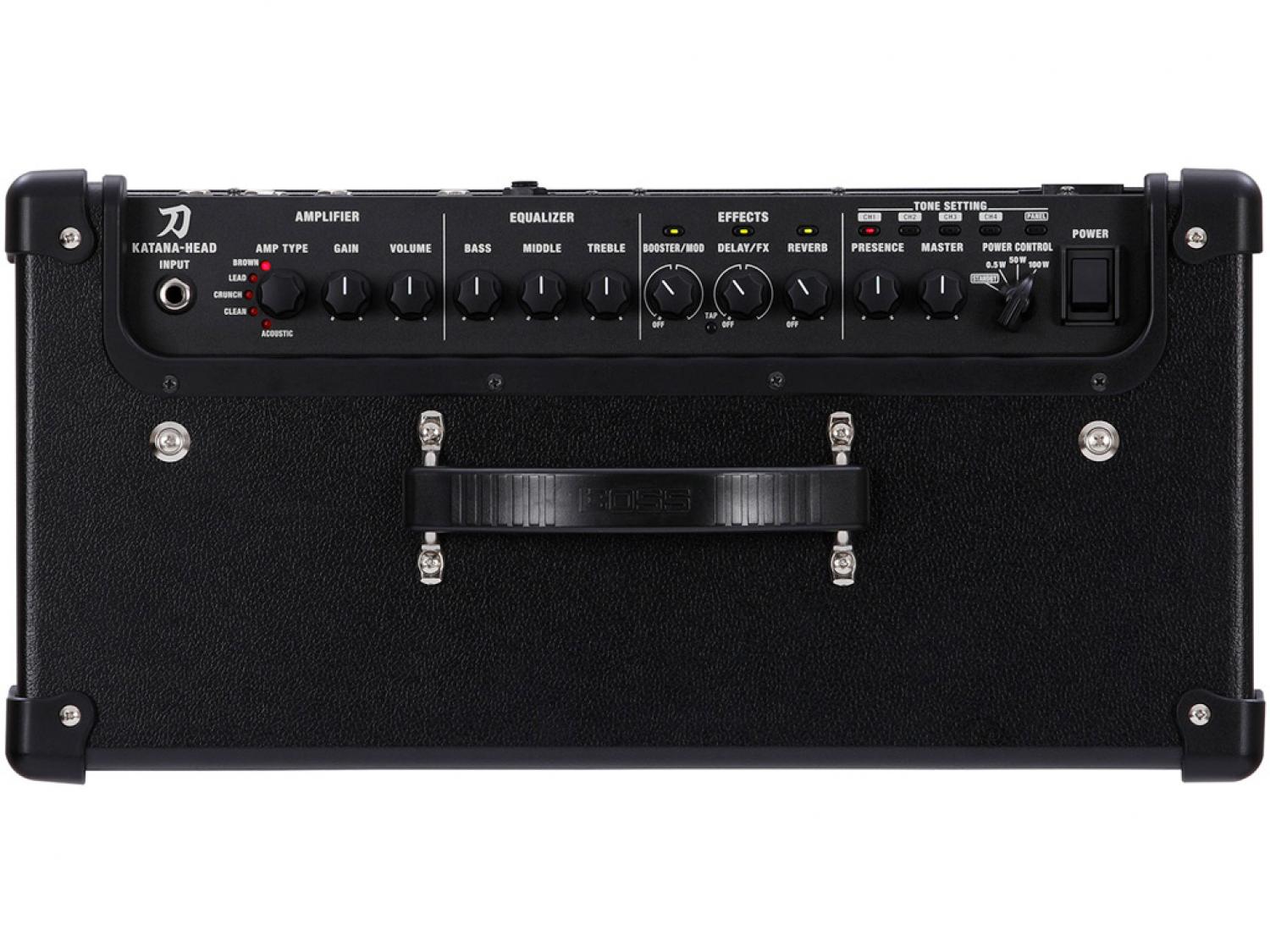 La Katana, spada tradizionale degli storici samurai giapponesi, è un simbolo di onore, precisione e di abilità creativa nella cultura giapponese. Orgogliosa di adottare il nome di questa spada, gli amplificatori Katana offrono timbri rock caldi e taglienti, frutto di generazioni di impegno e competenza. Nati dal processo di sviluppo alle spalle dell'acclamato amplificatore Waza, questi ampli innovativi incarnano la ricerca BOSS del suono rock definitivo. Con un design proprietario dei circuiti, ed una meticolosa messa a punto, la serie Katana combina una lavorazione tradizionale a funzioni totalmente innovative per produrre la vera nuova generazione di amplificatori rock. Compatta e potente, la testata da 100 Watt Katana Head offre timbri rock ad alta definizione con una presenza ricca e imponente. L'ampli include anche l'accesso integrato a 55 effetti BOSS, che sono personalizzabili utilizzando l'editor software gratuito BOSS Tone Studio. Sino a 15 effetti diversi possono essere caricati insieme, permettendo di costruire suoni perfettamente preparati all'interno dell'ampli. Inoltre, la versatile Katana Head è dotata di un loop effetti e dell'interfaccia MIDI per l'integrazione con strumentazioni avanzate, ed è equipaggiata con un pratico altoparlante monitor per il preascolto dei suoni e per esercitarsi senza collegare un cabinet.