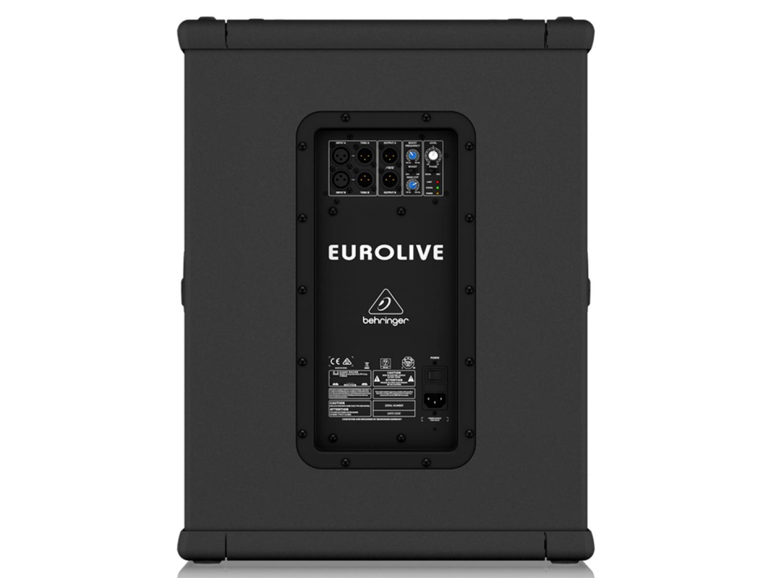 Il subwoofer attivo Eurolive B1500XP 3000 Watt offre il massimo della riproduzione delle basse frequenze e il crossover stereo incorporato lo rende ideale per l'utilizzo con qualsiasi diffusore Behringer attivo a 2 vie. Equipaggiato con un amplificatore 3000-watt in Classe D completamente nuovo, un trasduttore Turbosound da 15" ad escursione lunga a bassa frequenza (LF) ed una incredibile quantità di caratteristiche professionali, il subwoofer B1500XP produce livelli estremi di punch, con una definizione ed una nitidezza tipicamente riservati a sistemi molto più grandi. Con un telaio completamente ridisegnato e leggero, il B1500XP è il subwoofer più robusto e articolato di sempre. In parole povere, questi sistemi cool-running sono significativamente più leggeri rispetto ai loro predecessori, cosa che li rende estremamente facili da trasportare ed installare - ed il design senza compromessi significa che si ottengono bassi sorprendentemente profondi che manterrà la festa tutto lunga notte.