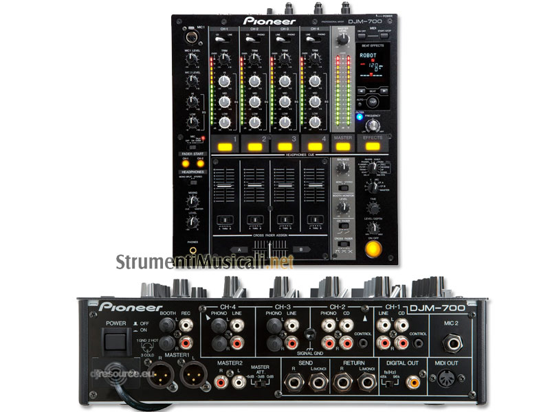 Grazie a una fedeltà sonora di primordine, a un approccio innovativo al mixing e a un primato mondiale per il Filtro Effect Frequency, il nuovo DJM-700 è totalmente diverso. Il mixer digitale a 4 canali eredita la qualità di suono dal DJM-800 e dal DJM-1000 e include anche una serie di caratteristiche quali connettività MIDI, 49 controlli assegnabili, effetti digitali all'avanguardia e un filtro preout che ti permette di filtrare gli effetti sonori. Vanta un DSP a 32 bit (Digital Signal Processing), 13 effetti Beat e un campionatore roll migliorato per fornire un format familiare al mondo dei DJ; questo nuovo mixer kit non ha paragoni. Con dimensioni e layout standard di mercato e una struttura dual shield che elimina il disturbo digitale, il nuovo DJM-700 è solido e affidabile. Il DJM-700 definisce un nuovo standard di qualità nella fascia media del mercato dei mixers, grazie a esso i DJ possono trasmettere un mixing armonico eccezionale utilizzando tecniche formidabili. Realizzato per l'uso professionale sia in studio che all'interno dei locali, l'incredibile DJM-700 ha un grande appeal.
