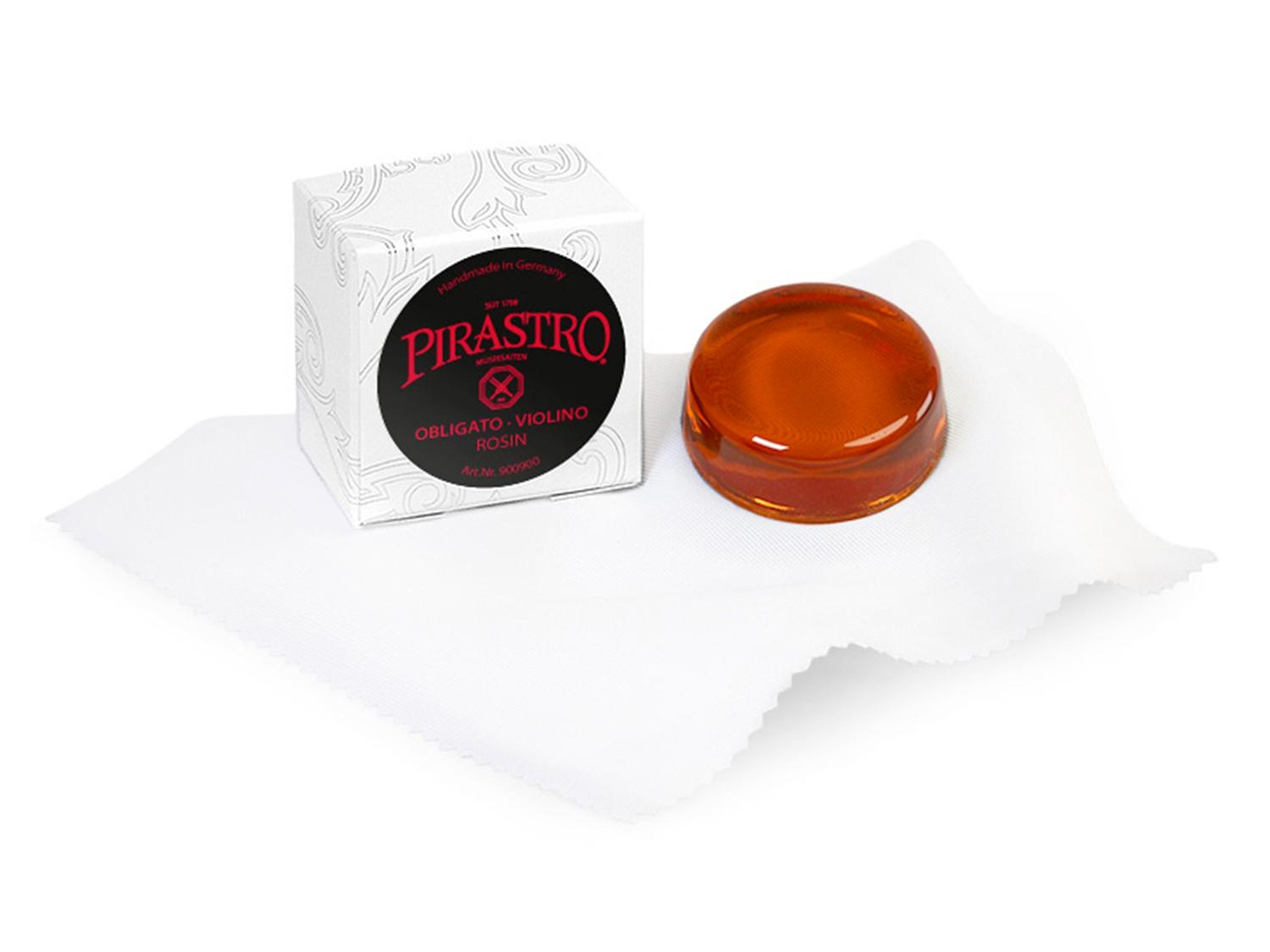 La resina naturale era ed è ancora ottenuta da alberi di pino durante l'autunno e l'olio di trementina è il prodotto che si ottiene attraverso la sua distillazione. La colofonia Pirastro Obligato / Violino Rosin di colore miele di bosco, ha un suono morbido, rotondo. E' adatta per corde sintetiche a bassa e media tensione.