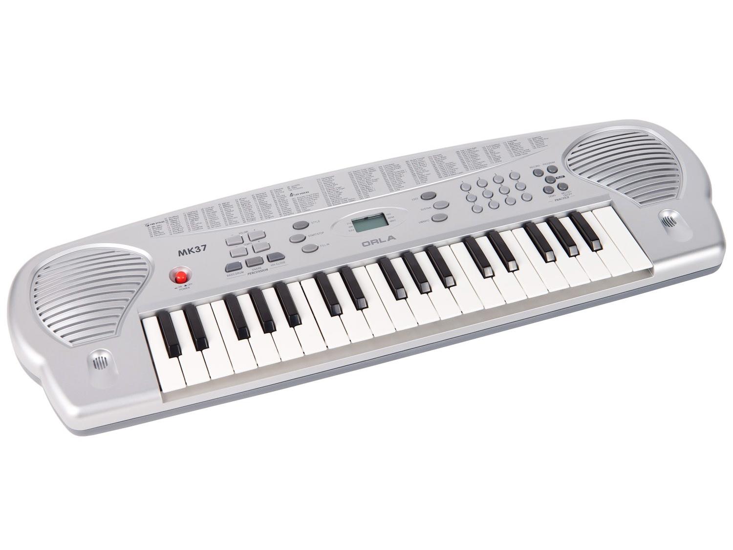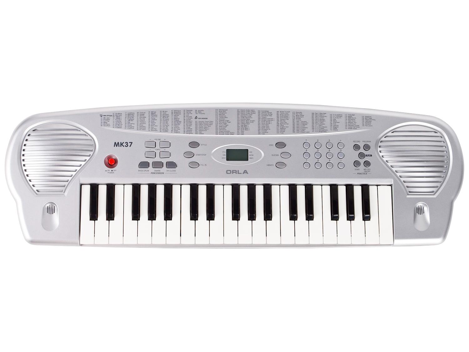 La tua Orla MK37 è una tastiera elettronica di alta qualità con 37 tasti touch, dotata di una tecnologia sonora PCM avanzata. La tastiera dispone di 100 stili di accompagnamento che possono essere utilizzati per fornire accompagnamenti orchestrali automatici completi. Il display LCD rende in funzionamento della tastiera ancora più semplice e intuitivo.