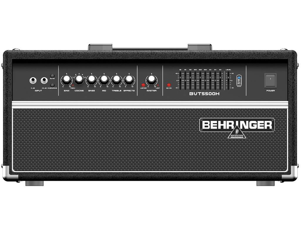 La testata Ultrabass BVT5500H è dotato di 550 Watt di potenza. BVT sta per Behringer Virtual Tube, la rivoluzionaria tecnologia VTC Tube di modellazione in grado di fornire il suono ed il feeling di un vero amplificatore valvolare. E' dotata di numerose funzioni, quali l'EQ grafico 9 bande ed i controlli Bass, Mid e Treble per un perfetto controllo del suono finale.