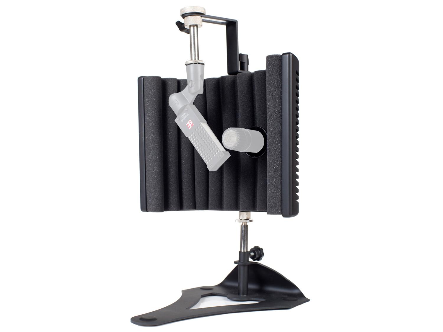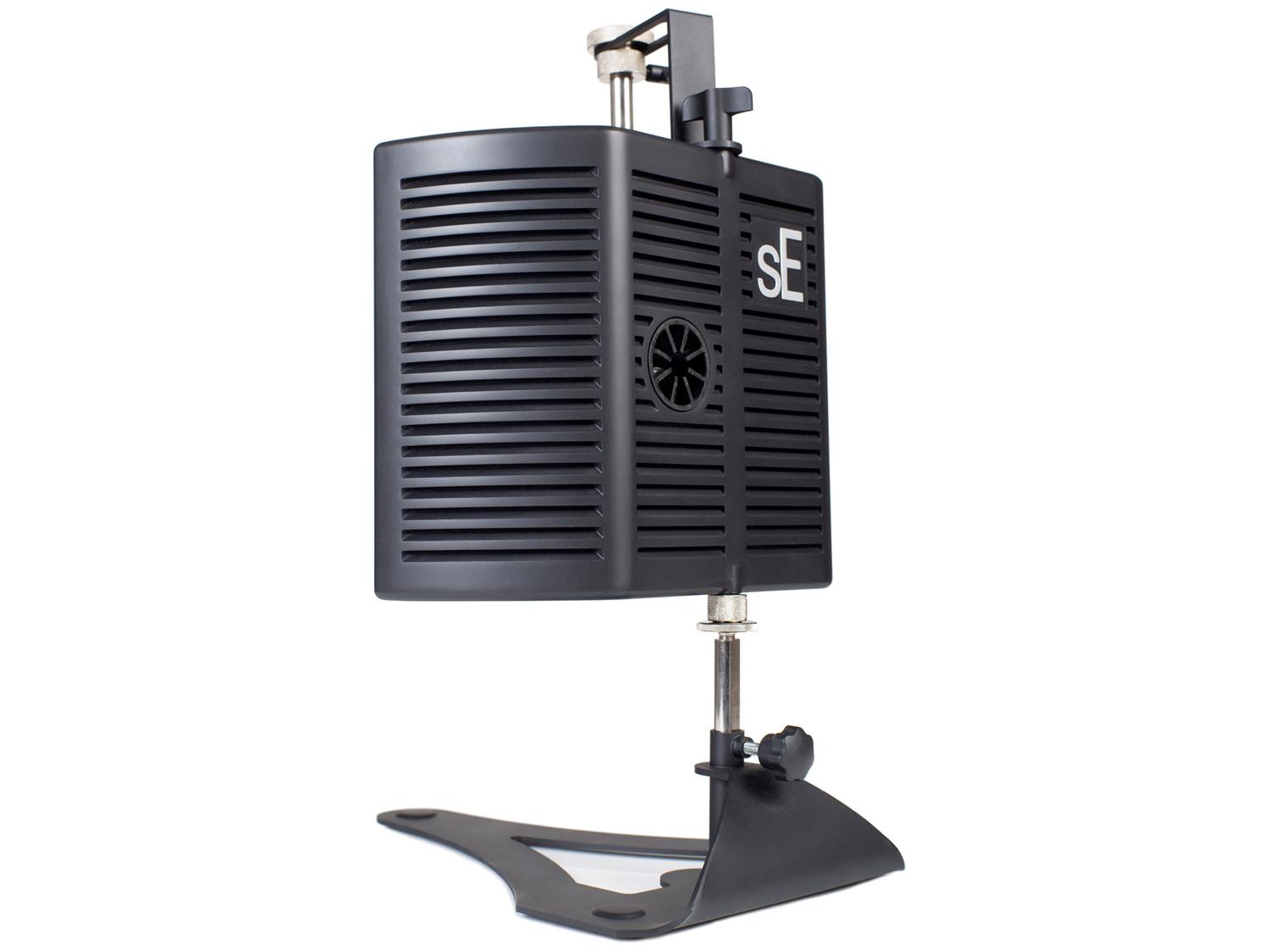 Il reflexion filter sE Electronics guitaRF permette di ottenere il suono del cabinet isolato che hai sempre desiderato, senza il fastidio o le spese della costruzione di una cabina di isolamento. Il guitaRF è estremamente semplice e facile da usare. Oltre a una staffa di montaggio, che consente di sostenere o sospendere il microfono a condensatore o a nastro preferito, c'è un foro nel filtro che è la dimensione ideale per un micorofono dinamico SM57 o di grandezza simile appena fuori dal centro del filtro stesso, che i guru della registrazione apprezzare davvero. Il risultato è che si può fissare un microfono al centro e un'altro fuori asse, il tutto bloccando contemporaneamente le riflessioni della stanza e mantenendo entrambi i microfoni in fase. La sua base piatta speciale consente di far scorrere il guitaRF fino all'amplificatore per una ripresa estremamente ravvicinata, e l'intera struttura è regolabile in altezza, in modo da allineare i microfoni allo sweet-spot del cabinet.