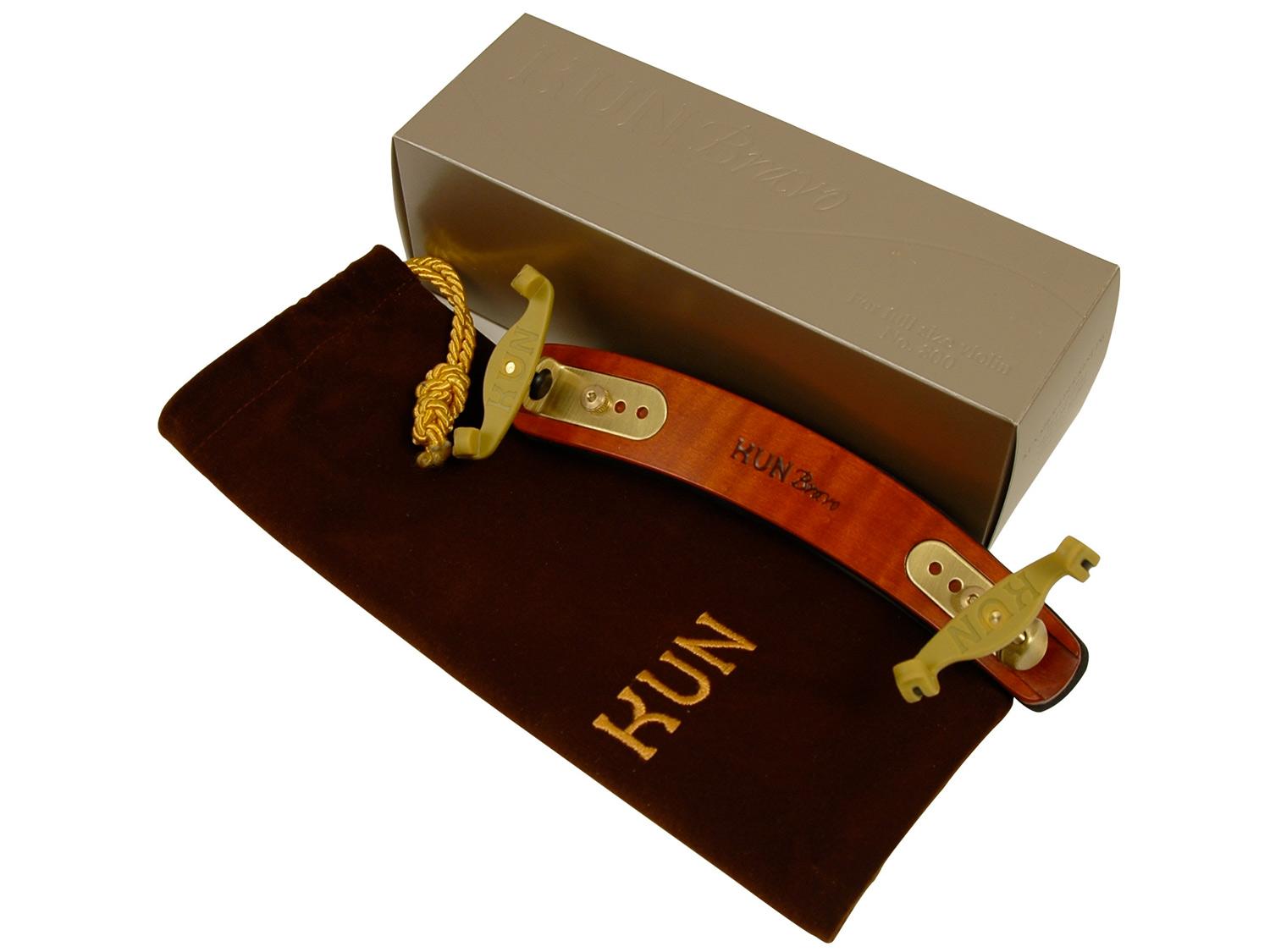 La Kun Bravo è unica tra le spalliere in legno. I legni curvi laminati della Kun Bravo, che alternano le venature del legno, garantiscono la massima resistenza ed una certa flessibilità. Di conseguenza, questa spalliera conserva la forma ergonomica Kun immediatamente riconoscibile, facilmente fissabile allo strumento, e la stabilità durante l'uso. Realizzata artigianalmente in Italia con Acero fiammato Europeo, la Kun Bravo ha un fascino eccezionale, mentre le sue estremità in ottone lucido sono completamente regolabili e incorporano il dispositivo di bloccaggio brevettato da Kun.