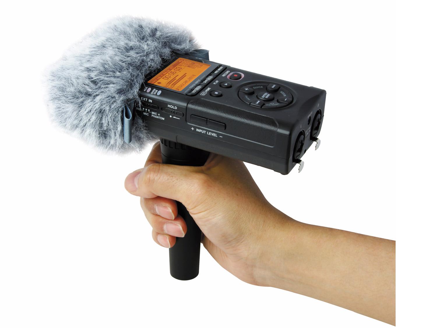 Questo pacchetto aggiuntivo di accessori aggiunge versatilità e comodità quando si registra sul campo. Questo kit dispone di un filtro per ridurre drasticamente il rumore del vento, una impugnatura per un utilizzo più facile, un alimentatore ed una custodia morbida per proteggere il registratore durante il trasporto.