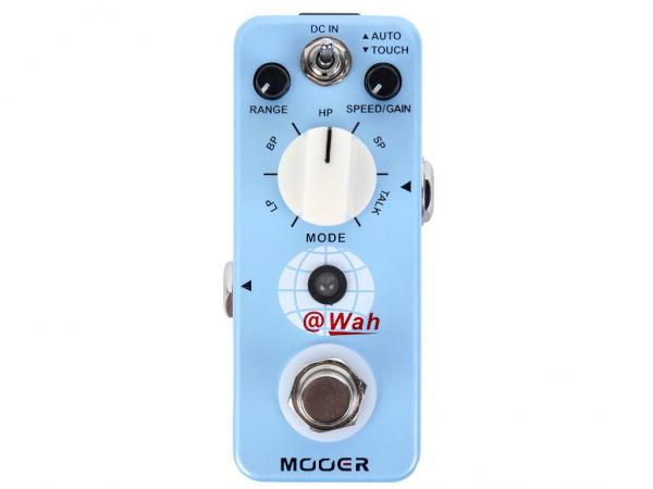 Il nuovo Mooer @Wah riunisce nello stesso micro pedale 4 tipologie di wah-wah molto diverse tra di loro, con l'aggiunta di uno stiloso Talk Wah. Dispone di due modalità principali di funzionamento: Auto, basato sul tempo e cambia ciclicamente l'apertura e al chiusura del filtro, e Touch che invece risponde in base alla dinamica suonata dal musicista sullo strumento. I tre controlli forniscono una grande possibilità di editing delle qualità timbriche del pedale.
