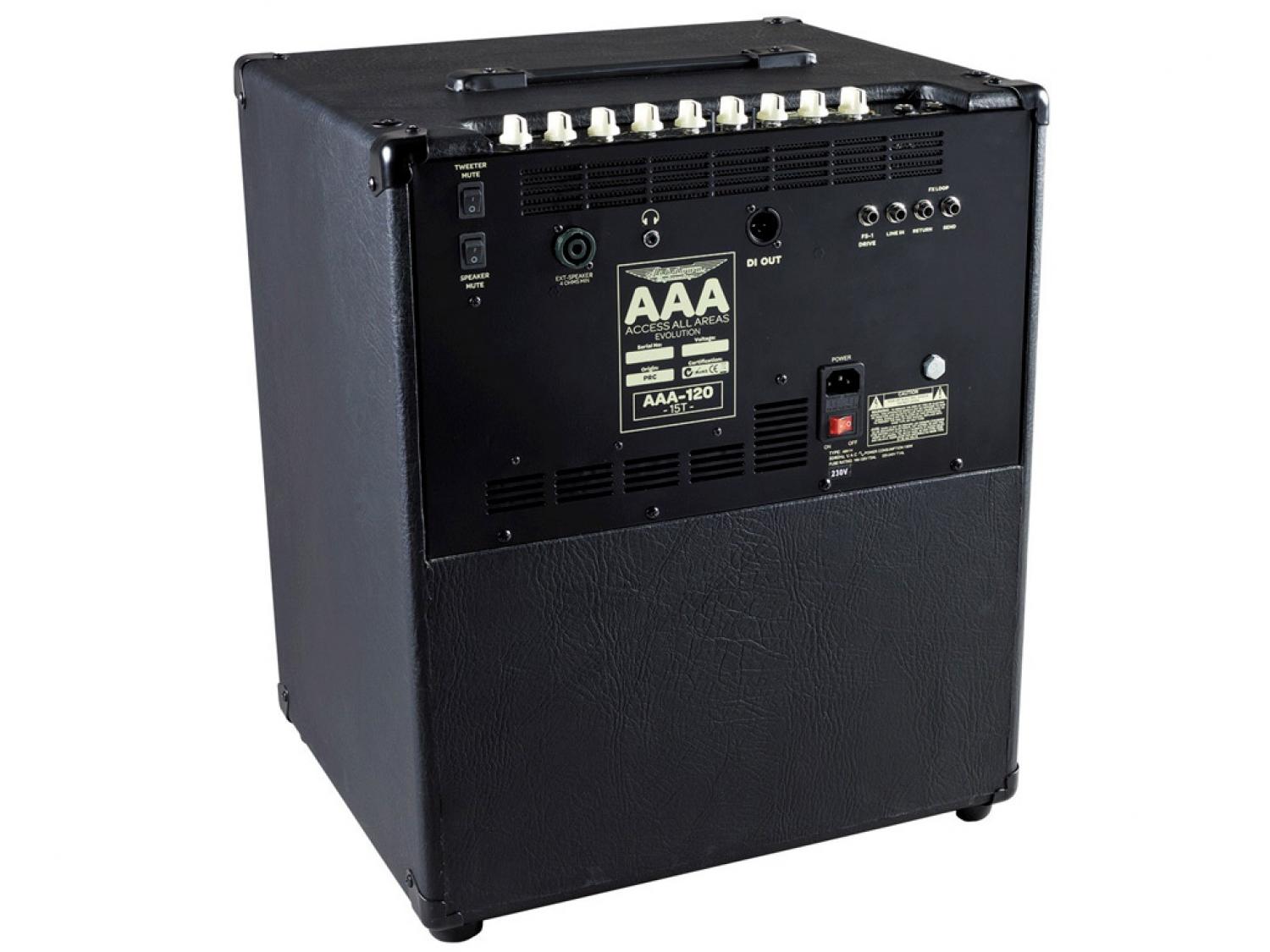 L'Ashdown AAA EVO 120-15T è un leggero ma ricco di funzioni amplificatore combo per basso da 120 watt che offre la sua potenza tramite un singolo altoparlante custom Ashdown da 15". Il 120-15T dispone di una gamma completa di funzionalità, tra cui ingressi attivi e passivi, una uscita DI bilanciata ed un tweeter, che lo rendono la soluzione perfetta per concerti di piccole dimensioni. La costruzione leggera in multistrato comporta un peso di soli 17kg.