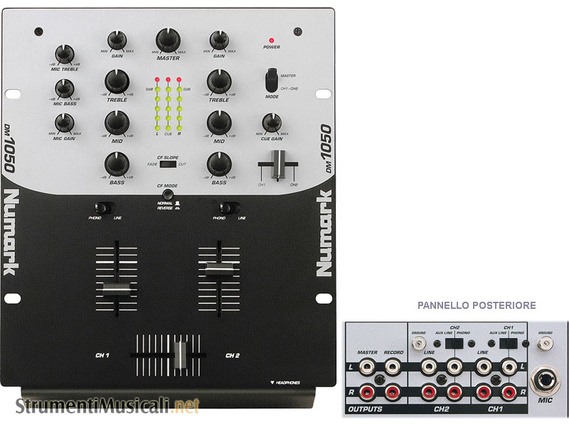 The Numark DM 1050 delivers a quality 10 inch mixer at a price you can afford! This 2-channel mixer features 2 phono inputs, 1 mic input and accepts signals from line sources as well. Take complete control of each channel with the integrated 3-band EQ, then mix your masterpiece using the adjustable crossfader.