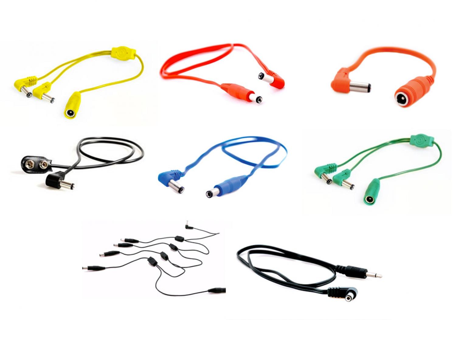 Kit di sopravvivenza, composto da 8 cavi speciali, per effetti a pedale con prese di alimentazione non standard.