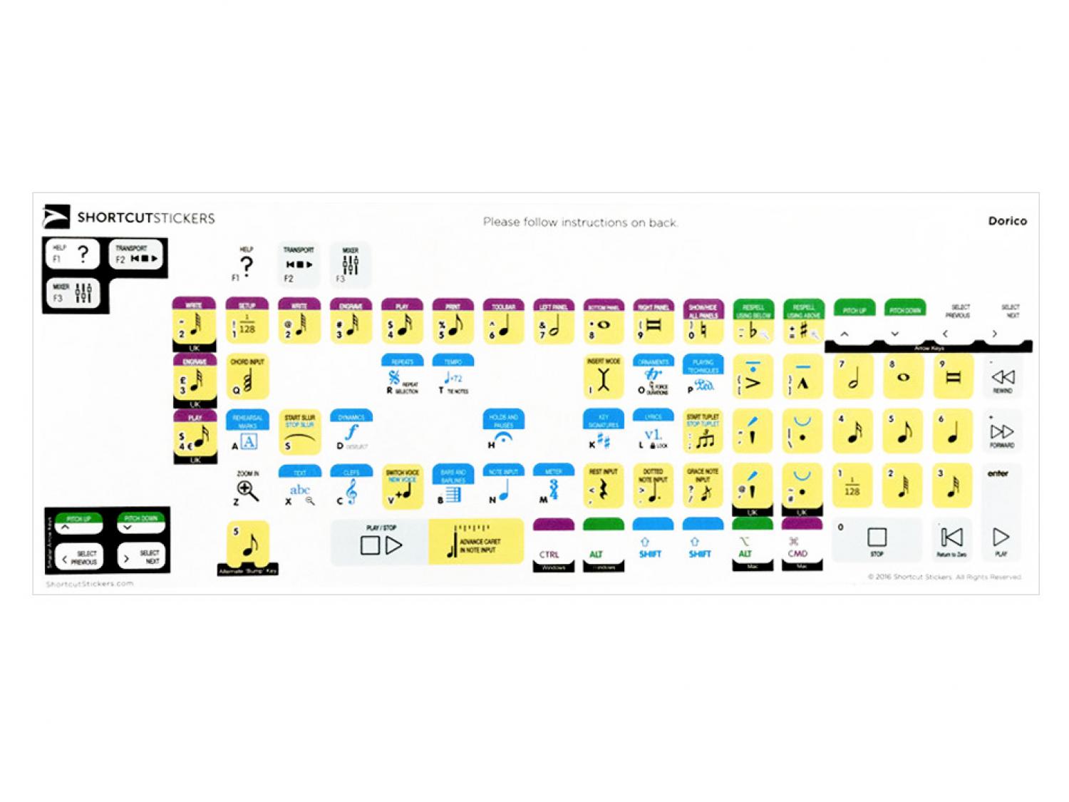 Adesivi Steinberg con tasti di scelta rapida per il software di notazione musicale Dorico di Steinberg. Gli adesivi per tastiera Steinberg sono progettati per migliorare la produttività e per farti godere il tuo lavoro durante tutto il percorso.