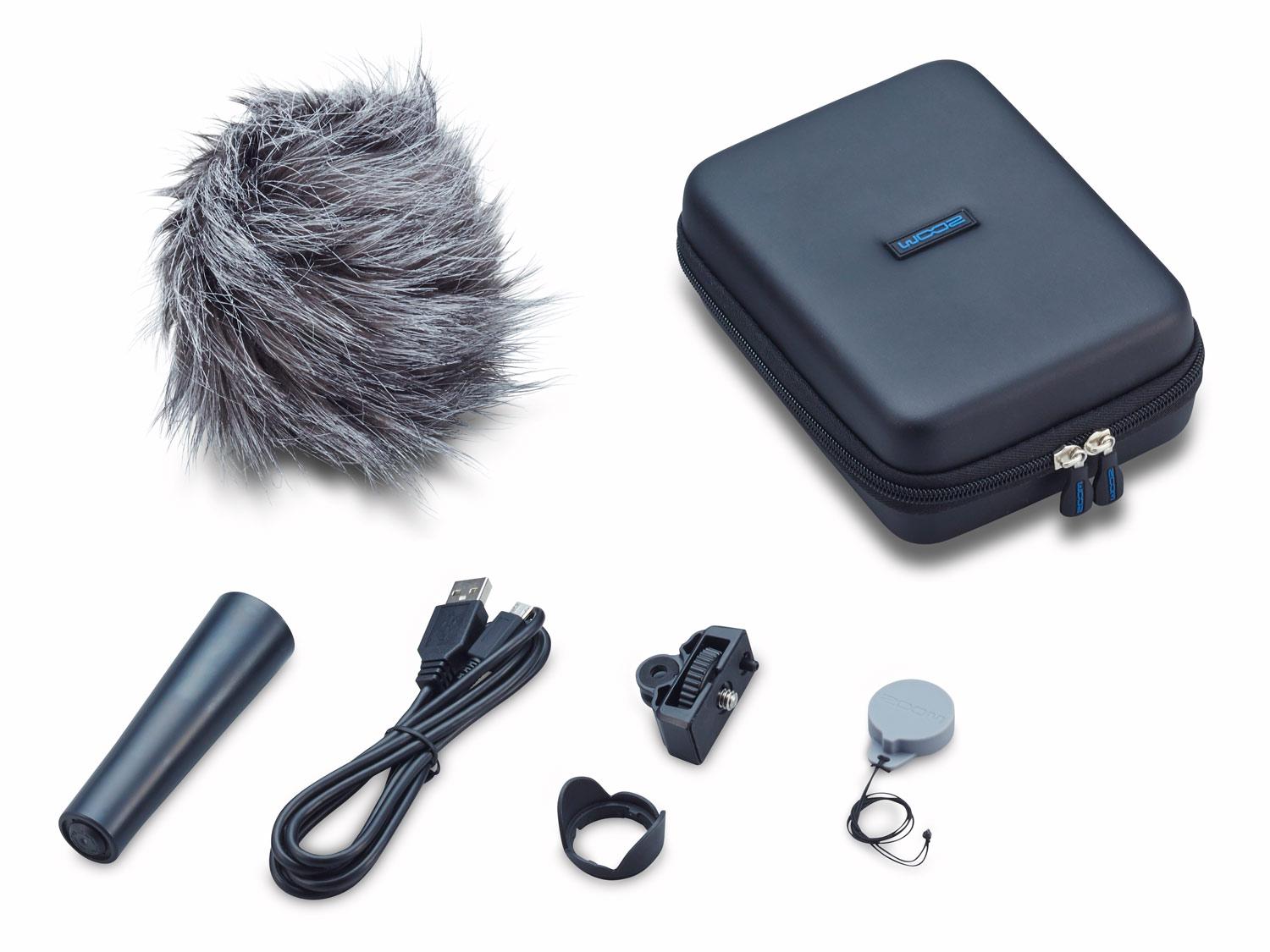 Il pack contiene un paraluce per bloccare la luce indesiderata o i bagliori dai tuoi scatti, così come un filtro antivento per la registrazione di suoni cristallini in qualsiasi ambiente. Con l'APQ-2n viene fornito un adattatore treppiede/asta per microfono, che funge anche da comoda maniglia in modo da registrare più facilmente quando si è in movimento. C'è anche adattatore per fissare il tuo Q2n ad un pole-mount, impugnature ed altri luoghi per ottenere una moltitudine di inquadrature e angolazioni. Il cavo USB incluso consente un semplice collegamento ad un computer o iPad. Inoltre un copriobiettivo e una custodia imbottita aiutano a prevenire l'usura del Q2n.
