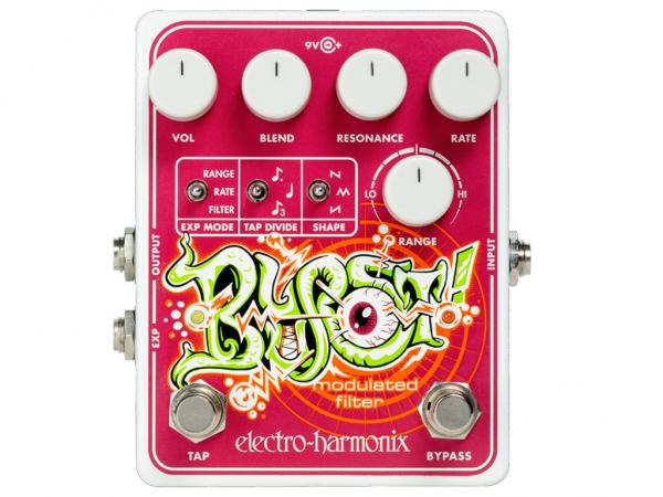 EHX ha trapiantato la tecnologia che si trova nei sintetizzatori con tastiera e modulari in un pedale progettato per chitarristi e bassisti. Mentre la modulazione di un tipico filtro inviluppo è controllata dall'attacco della chitarra, il filtro del Blurst è modulato da un oscillatore a bassa frequenza interno (LFO), simile ad un tremolo o ad un Phaser. Quando si aggiunge un pedale di espressione o una sorgente di controllo della tensione (CV) al Blurst, si ottiene un controllo ancora maggiore sul LFO o sul filtro stesso. Il percorso del segnale completamente analogico del Blurst contiene un filtro passa-basso di quarto ordine a risonanza variabile. La modulazione di base è controllabile tramite un LFO interno variabile con la possibilità di scelta fra tre forme d'onda. La modulazione (tra cui l'LFO stesso) è controllata in modo digitale, consentendo il tap-tempo (con tre opzioni di divisione) e il controllo del pedale di espressione di tre parametri selezionabili a tua scelta. Queste caratteristiche aumentano notevolmente la varietà di suoni filtrati che è possibile generare con il Blurst.