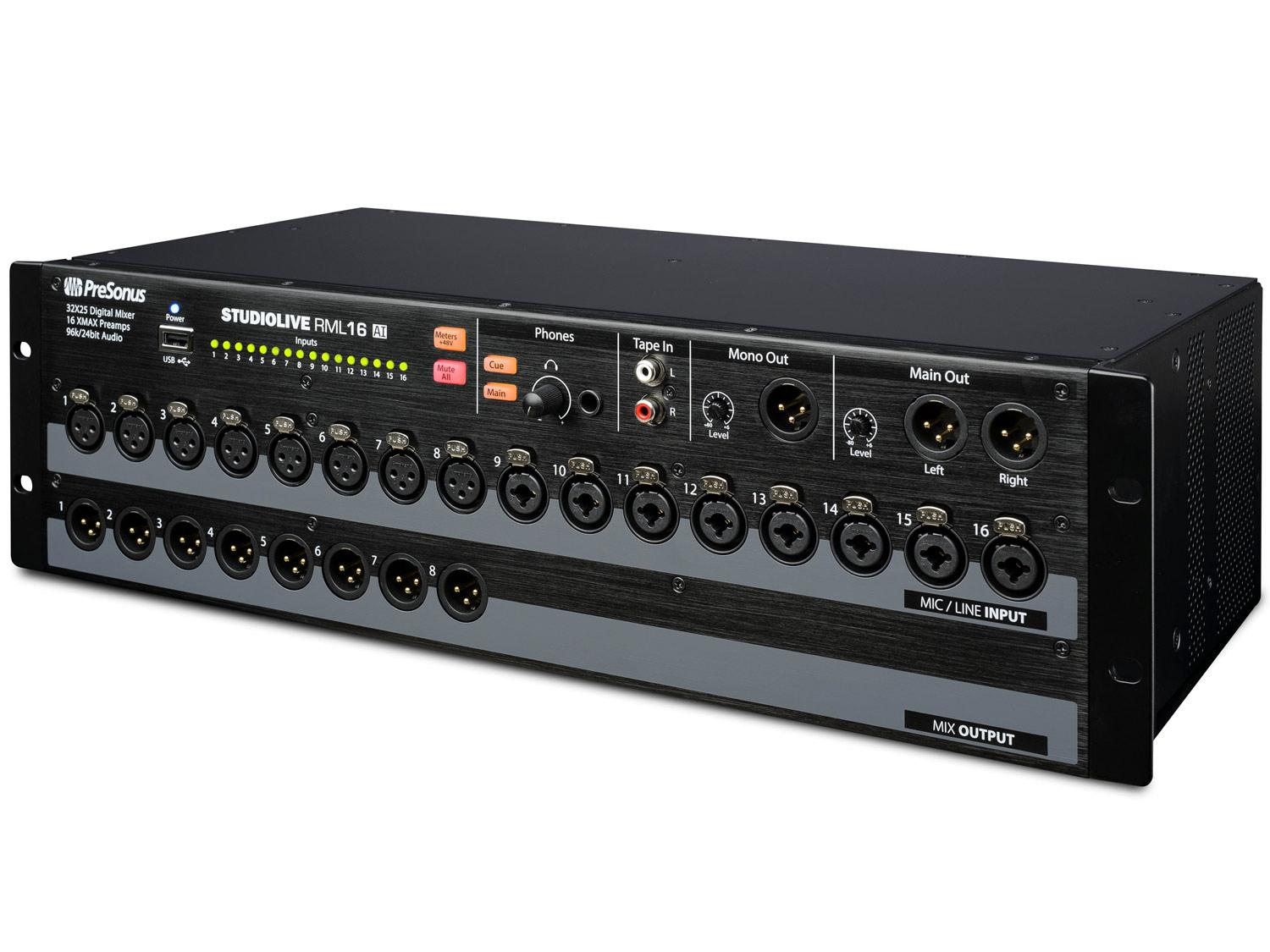 Il potente, scalabile e compatto mixer StudioLive RML16AI montabile a rack combina il software touch-control totalmente nuovo, battle-ready UC Surface per Windows, Mac OS X, e iOS con una potente e completa serie di servizi per un massimo di 64 canali di mixaggio. Basato sul motore della serie StudioLive Al, la tecnologia Active Integration della serie StudioLive RML offre networking direct Wi-Fi e Ethernet, assieme ad una suite software strettamente integrata che include il software di registrazione Capture con un vero soundcheck virtuale ed il software DAW Studio One Artist per Mac e Windows. Metti tutto questo insieme e i mixer della serie StudioLive RML offrono una soluzione completa per il live-sound mixing e la registrazione in studio.