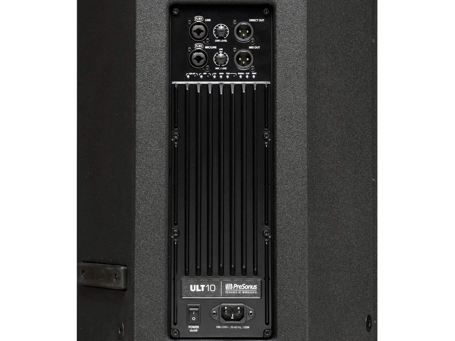 I nuovi speaker attivi PreSonus ULT10 combinano la più ampia copertura orizzontale in diffusori di questa classe, con una dispersione sonora verticale controllata, garantendo maggiore distanza nella diffusione del segnale audio. Il risultato è una copertura sonora omogenea di tutto lo spazio, che permette al pubblico di ascoltare nitidamente ed indipendentemente dalla posizione. L'altoparlante proprietario Pivot X110, un brevetto PreSonus, garantisce un'eccezionale intelligibilità nella riproduzione della voce ed una resa musicale incredibilmente naturale. Grazie a queste caratteristiche, l'ULT10 rappresenta un'ottima scelta sia per soluzioni mobili, sia in installazioni fisse. L'ULT10 offre potenza e I/O più che sufficienti per trattare un'ampia varietà di applicazioni e ambienti. Il suo woofer da 10" è pilotato da un finale di potenza di 500W (continui), in Classe D, mentre la tromba 1,75" Pivot X110 riceve 150W (la potenza di picco è misurata a 1000W e 300W rispettivamente). Ci sono due input combo XLR e TRS 1/4": un ingresso mic/line con l'acclamato preamplificatore microfonico PreSonus XMAX ed un ingresso di linea. Gli ingressi hanno un controllo del livello indipendente, che consente di mixare fino a due sorgenti audio internamente e sommarle ad una uscita XLR bilanciata per il "daisy-chain" di più unità. Un uscita diretta separata per il canale di ingresso di linea fornisce ulteriore flessibilità.