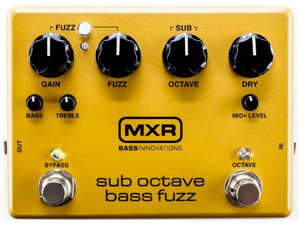 I Sub Octave Bass Fuzz fornisce una fragorosa fascia bassa con un fuzz che scuote il suolo. Per creare questo colosso sonoro, gli ingegneri MXR hanno combinato la sezione Growl del Bass Octave Deluxe con un circuito fuzz a lungo dimenticato. Con tre controlli separati del livello d'uscita di fuzz, sub ottava e segnale dry, è possibile creare la propria ricetta di suoni sotterranei senza sacrificare nulla del suono naturale dello strumento. Ulteriore versatilità si presenta sotto forma di controlli del tono della sezione fuzz e due voci selezionabili - caldi e compressi o luminosi e aggressivi - assieme al controllo Mid level, che consente di dare al segnale dry pò più forza nella gamma media.